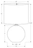 This stylish and fashionable globe-shaped 16"h table lamp with a cream ceramic base and topped with a softly contrasting cream fabric drum shade, is the perfect accent to brighten any room. Featuring a 3-way switch holding a single bulb with a maximum outage of 100W/120V, allows you to customize the ambiance in your living room, home office, or bedroom. With a soft, contemporary appeal, place this versatile decorative lamp on a side or end table, or on your nightstand to create a warm and inviting atmosphere. Made with durable quality materials ensuring longevity, this lamp includes a 2-year limited warranty against any manufacturer's defects for a worry-free purchase.