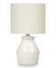 Freshen up a side or end table, or bedside table with this simple, modern style 17"h table lamp designed with a chic angular cream ceramic base and topped with an ivory linen drum shade. This decorative accent is fitted with a rotary switch that holds a single bulb (not included) for a maximum output of 60W/120V, easily illuminating a table or desk. Attached with a 5ft transparent cord, this versatile lamp adds a breezy ambiance in a living room, home office, or bedroom. Made with quality materials, this lamp includes a 2-year limited warranty against any manufacturer's defects for a worry-free purchase.