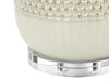 This stylish, contemporary 31"h table lamp has a cream ceramic body with a raised textured finish, mounted on a clear acrylic base for some sparkle, and topped with a beige fabric drum shade with a round ceramic finial, adding some fashionable flair to any end or side table, console, or nightstand. The 3-way switch holding a single bulb (not included) for a maximum output of 100W/120V, helps to customize and create the perfect lighting conditions in a space. Attached with a discreet 6ft clear cord, this casual accent lamp will look right at home in your living room, bedroom, or home office for a warm and inviting ambiance. Made with high-quality materials, this decorative lamp includes a 2-year limited warranty against manufacturer's defects for your satisfaction. This accent lamp is sure to make a statement and brighten up any room with ease.