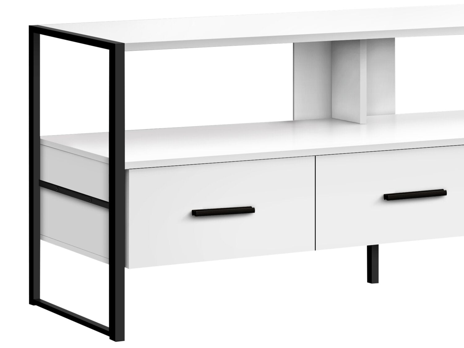 | Storage Options | A wide, open shelf and three drawers. |