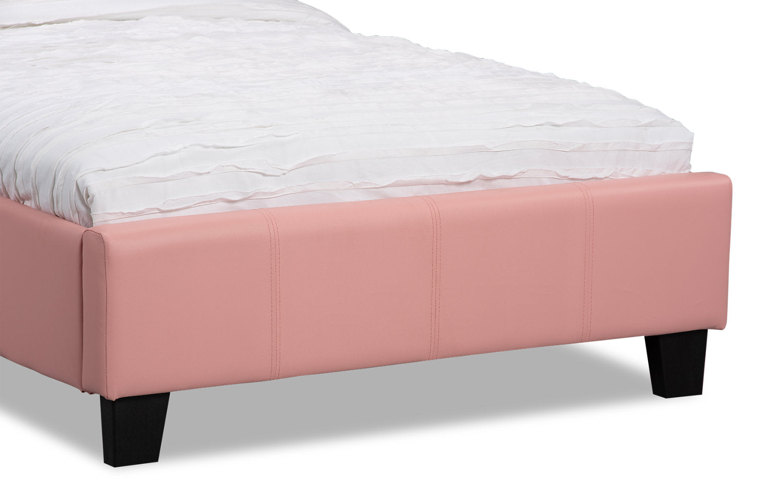 Make a fashion statement in your child's bedroom with this sleek and contemporary Chase twin bed. Built with a stable pine wood frame, this chic bed is covered in easy-to-care-for faux leather. The vibrant, pink upholstery adds instant energy to any child's bedroom, while also pairing well with many different bedding patterns. This stylish sleeping space also comes with five bed slats to provide extra support for your boxspring (required).