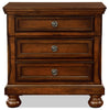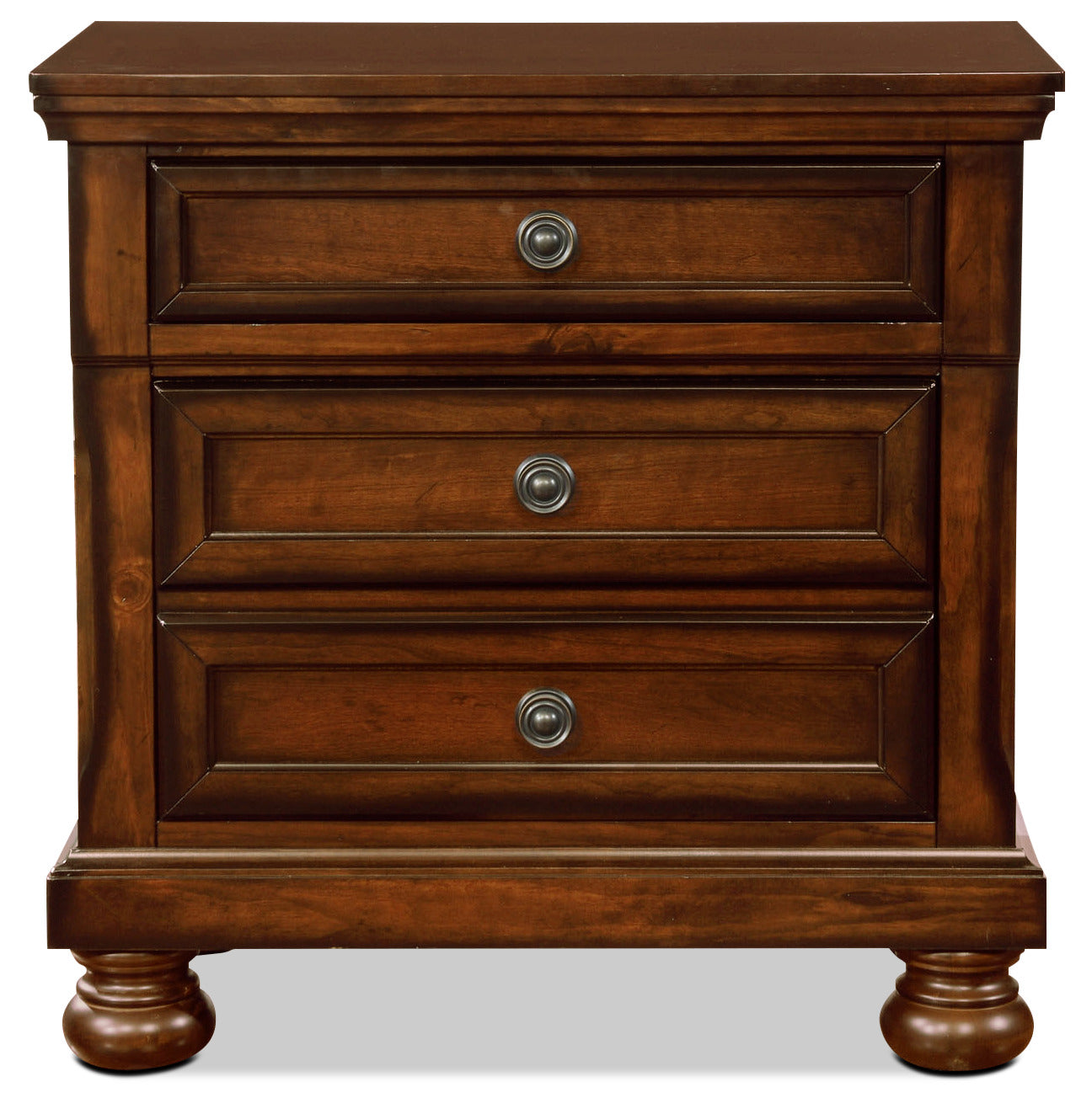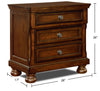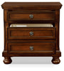 Add a traditional touch to your bedroom with this Chelsea nightstand. Of the three functional drawers, each slides in and out effortlessly. All drawer fronts are decorated with detailed frames and antique brass-finished hardware. The top drawer is lined with felt for extra special treatment for your bedside treasures. The radiant cherry veneers look ravishing in natural light, making for a classic colour that tends to grow richer in character with each passing year. Behind the veneers, pine solids keep this piece strong yet relatively lightweight.