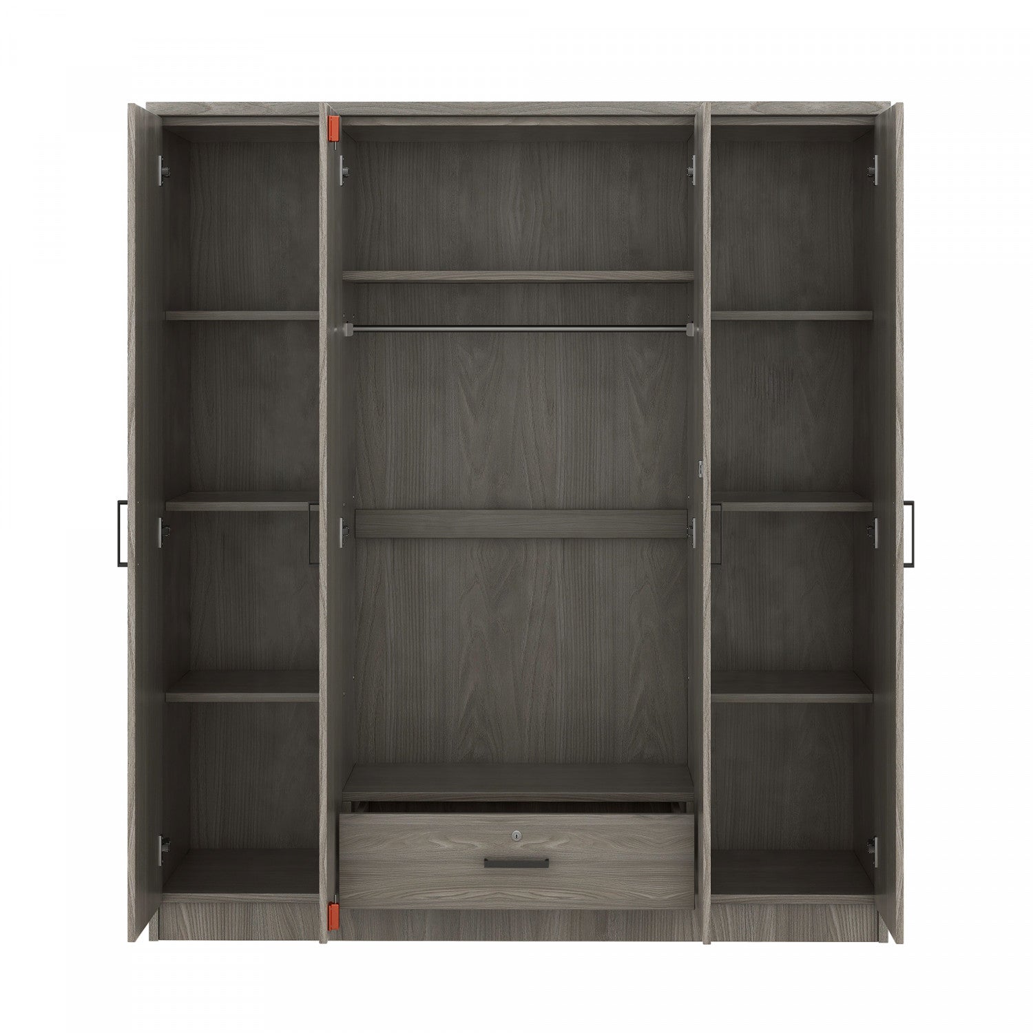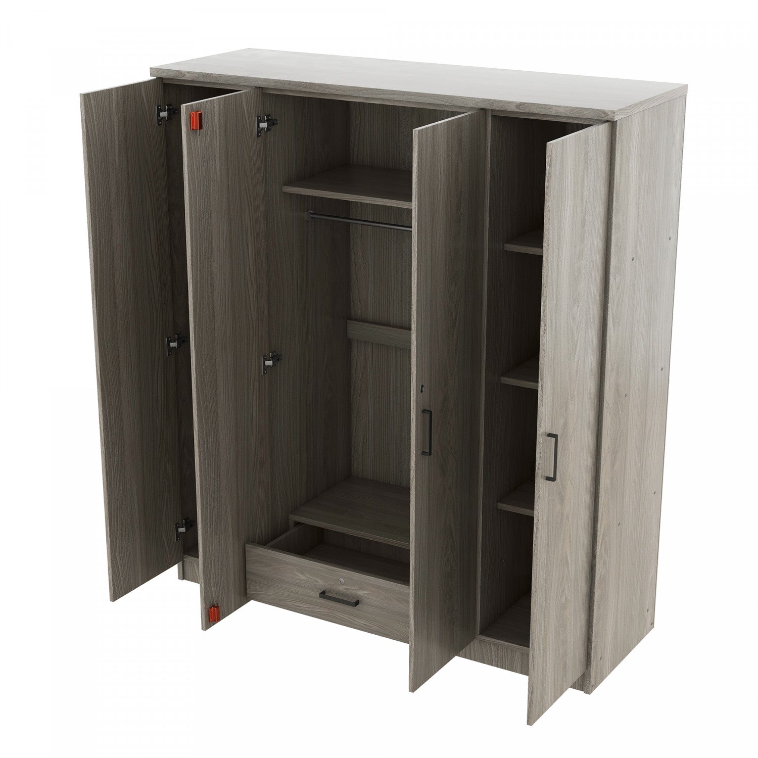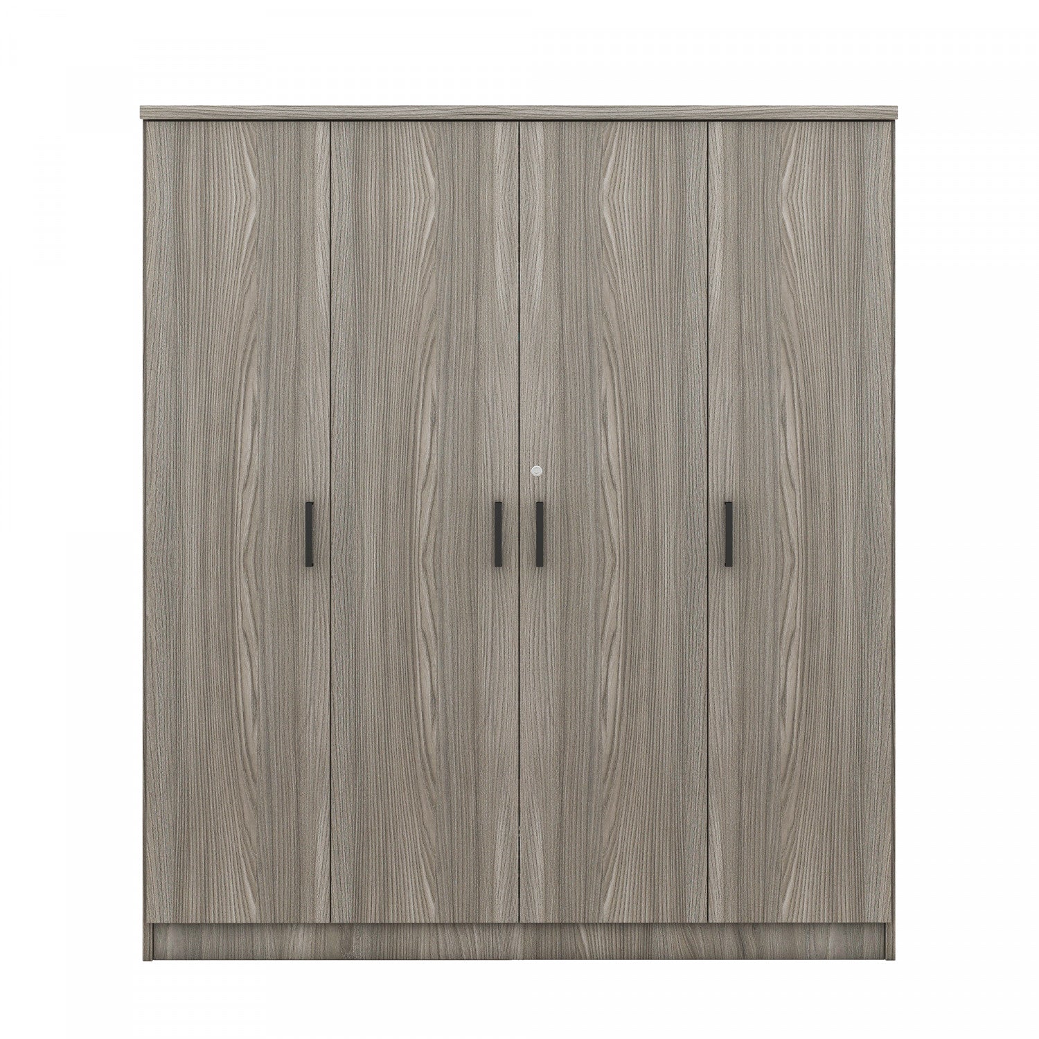 The 4-door wardrobe provides ample storage with a clean, modern design. It features multiple shelves, a secure lockable drawer, and a hanging rod to keep your wardrobe neatly organized. Sleek handles enhance its minimalist look, while the compact footprint makes it ideal for a variety of room sizes. Built from durable engineered wood, it offers a long-lasting solution to your bedroom storage needs with both style and practicality.