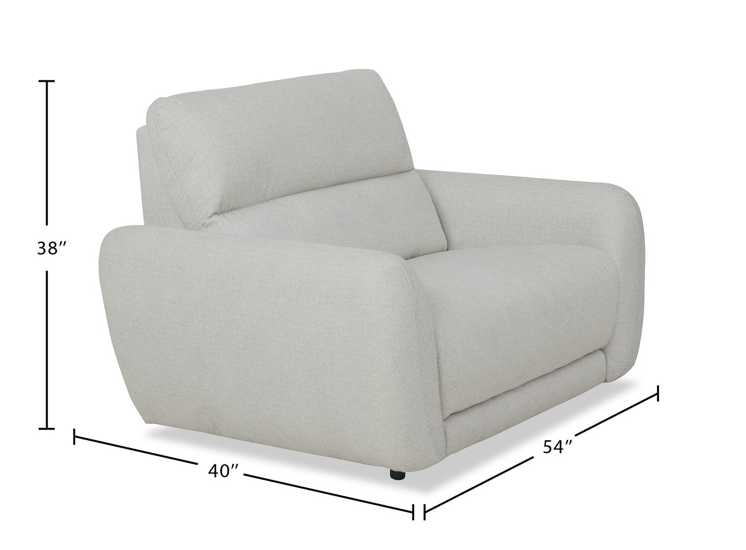 Part of the exclusive Cindy Crawford Home collection, this Kailyn power reclining chair invites you to lounge in style. Extra wide, deep seating offers indulgent comfort, while power reclining and a power headrest make it easy to find your perfect position. Designed with curved lines and wrapped in a neutral beige fabric, this chair brings contemporary style to any space. Enjoy this piece on its own or include it in a complete set with its matching sofa (sold separately). With the Kailyn, get an effortless combination of sophistication and relaxation.