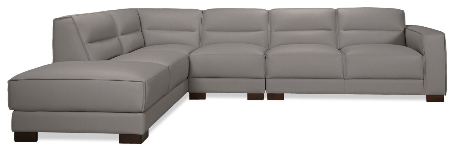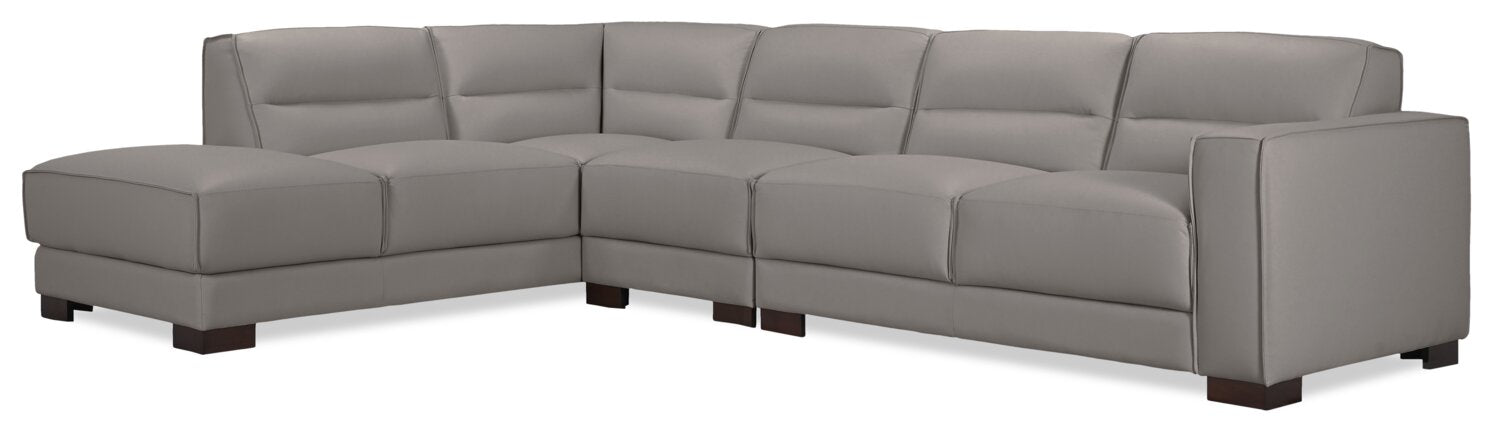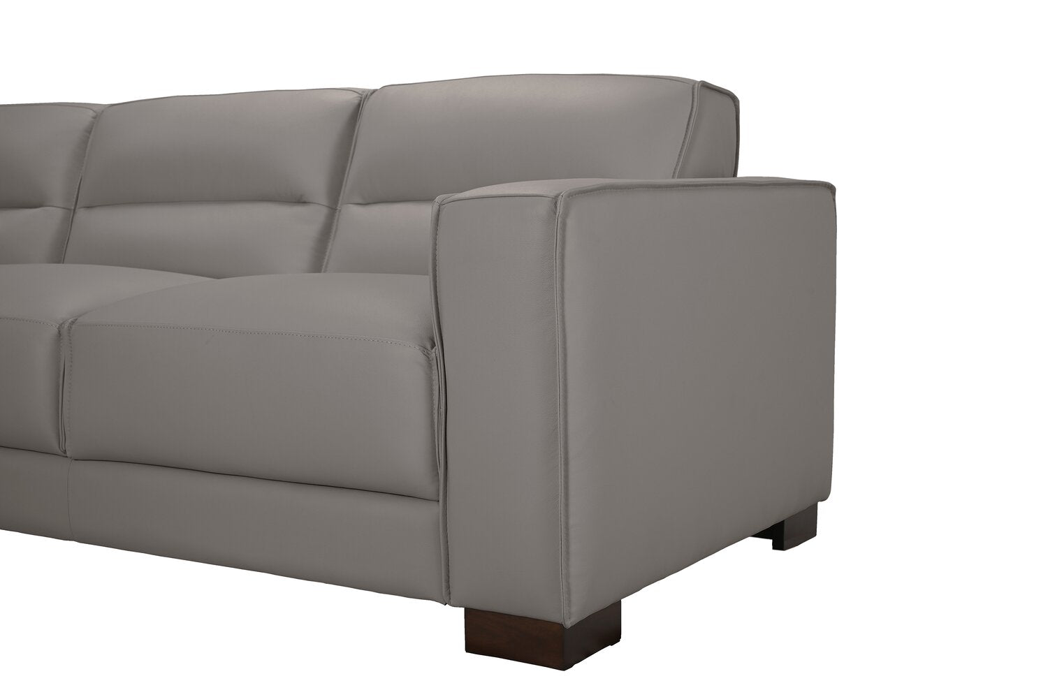 Citadel 3-Piece Left-Facing Top-Grain Genuine Leather Sectional with Wood Legs - Grey