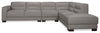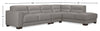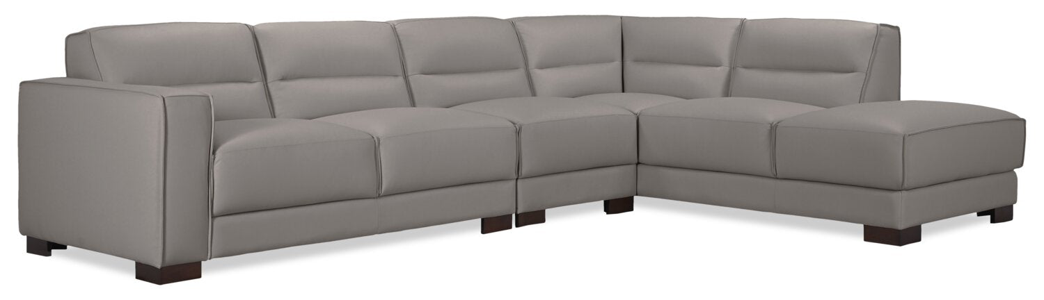 Perfectly suited for luxury spaces, this Citadel sectional exudes modern elegance. Wrapped in sleek genuine leather, this piece will effortlessly elevate any surrounding setting. A rich grey hue makes it an ideal addition to various homes, complementing neutral tones and bold colours. Plus, dark brown legs complement the dark upholstery to add subtle style. Although this sectional boasts a sophisticated design, it is also notable for its comfort. Lean into high-density foam cushions and revel in the lavish feel of smooth leather. Make a grand statement with the Citadel.
