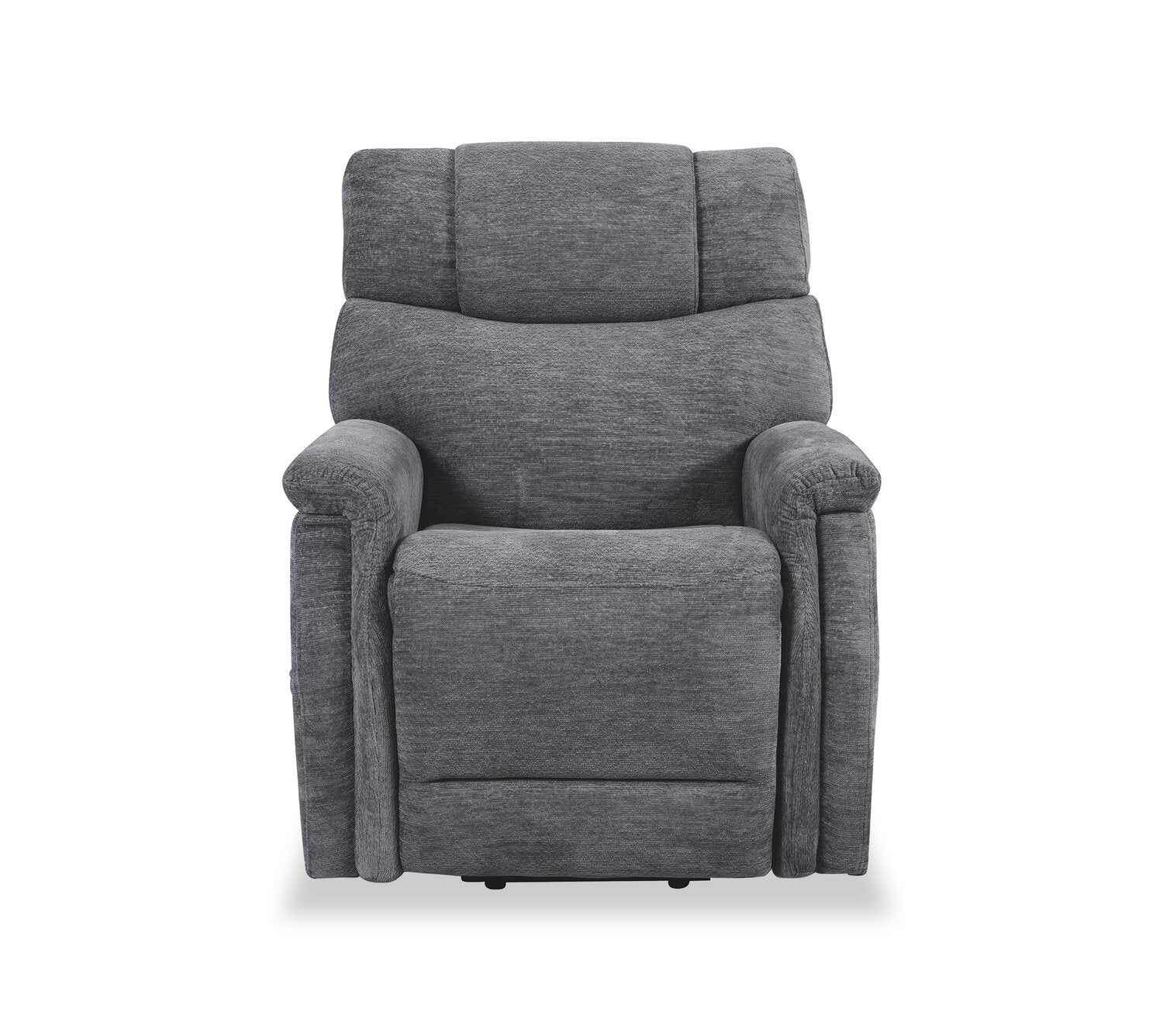 | Sold Separately | Matching Claire leather-look fabric power lift reclining chair in charcoal grey. |