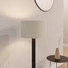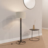 This floor lamp adds a classic touch of elegance to any room. With its sleek, minimalist stand supporting a cylindrical shade, it diffuses a warm, ambient light that's perfect for creating a cozy atmosphere in your living space.