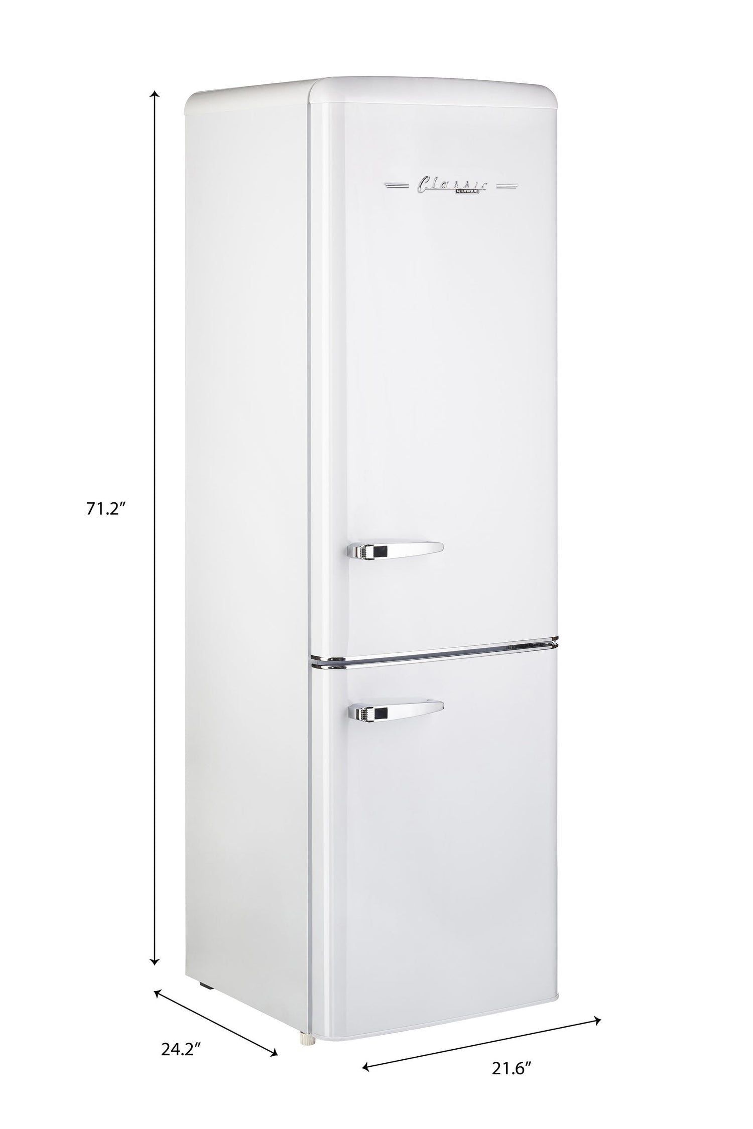 Unique's 9 cu. ft. retro bottom mount refrigerator transports you back to the '50s with its iconic retro design and chrome finished accents. This refrigerator is for energy efficiency all year-round, designed for optimal energy savings and easy, dependable use. Storing your fresh and frozen foods is easy with its convenient fridge on top and freezer on the bottom design. Convenient storage options and simple effortless controls all packed into a stylish retro design make this the perfect stand out unit for your home, cottage or man cave/bar.