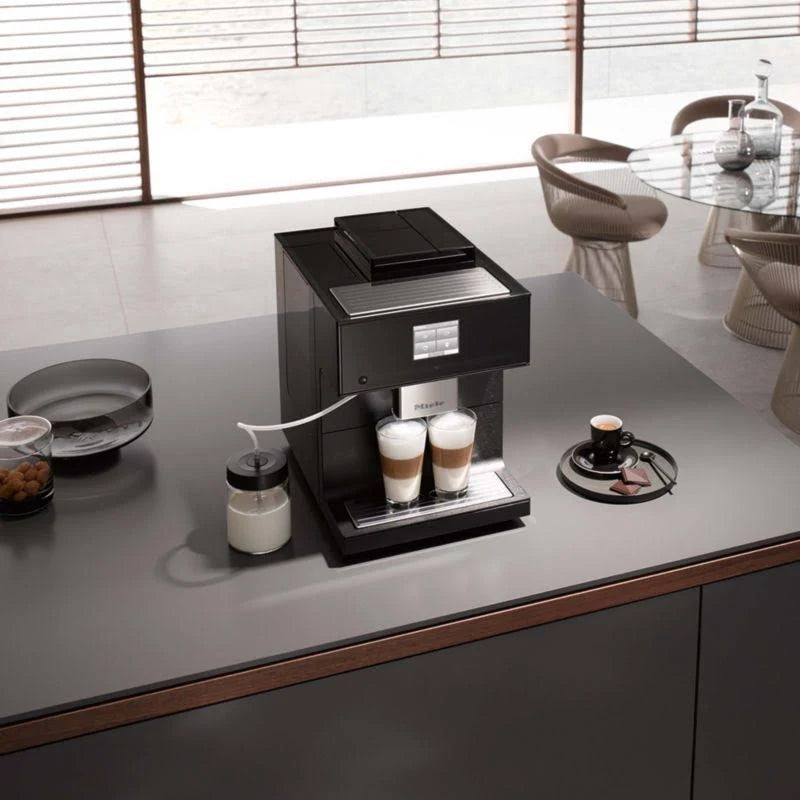 The Miele SM 7750 CoffeeSelect countertop coffee maker is ready to create barista-level specialty drink in mere moments. Countertop coffee machine with CoffeeSelect and AutoDescale for maximum flexibility. It's the perfect interplay of components – grinder, brew unit and pump – that ensures a superb coffee experience.