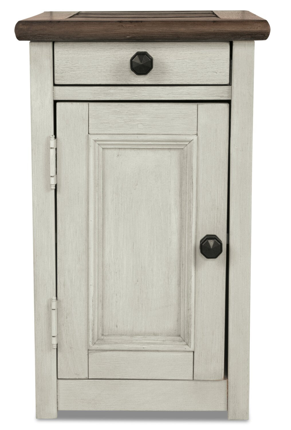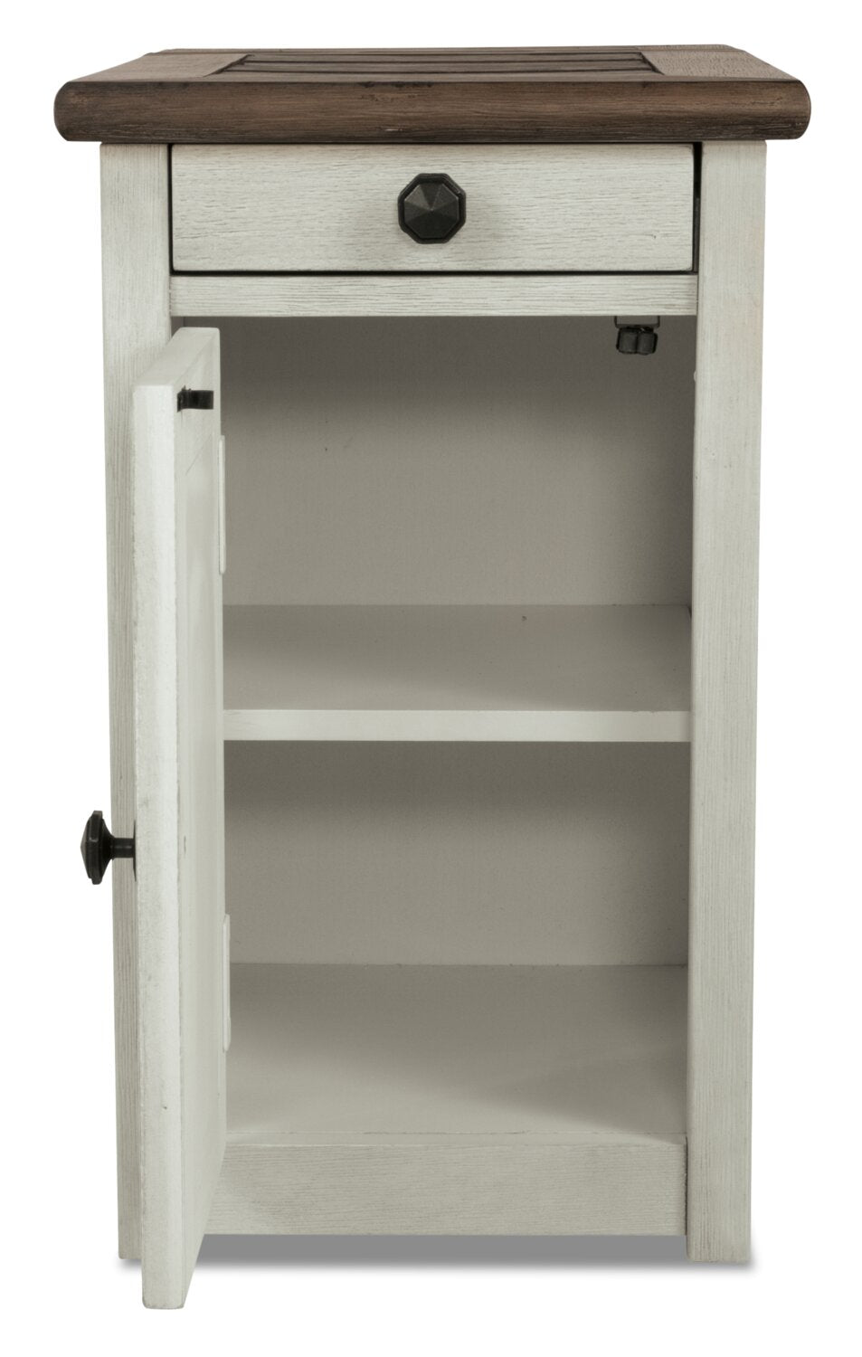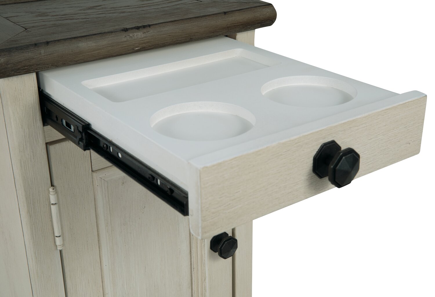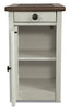 | Accent Details | Black metal knobs on the drawer and cabinet complete the farmhouse style of this piece. |