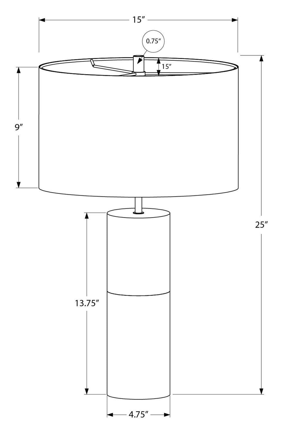 Make your room shine with this stylish and fashionable 25"h table lamp! The contemporary designed, smooth black concrete and gold metal base is topped with a black fabric drum shade and finished with an elegant gold finial for a versatile decorative accent to add to an end or side table, or on a nightstand. This lamp easily illuminates a living room, office, and bedroom with just the flick of a 3-way switch that holds a single bulb (not included) for a maximum output of 100W/120V, allowing you to adjust the brightness level. Made with durable quality materials ensuring longevity, this lamp includes a 2-year limited warranty against any manufacturer's defects for a worry-free purchase.