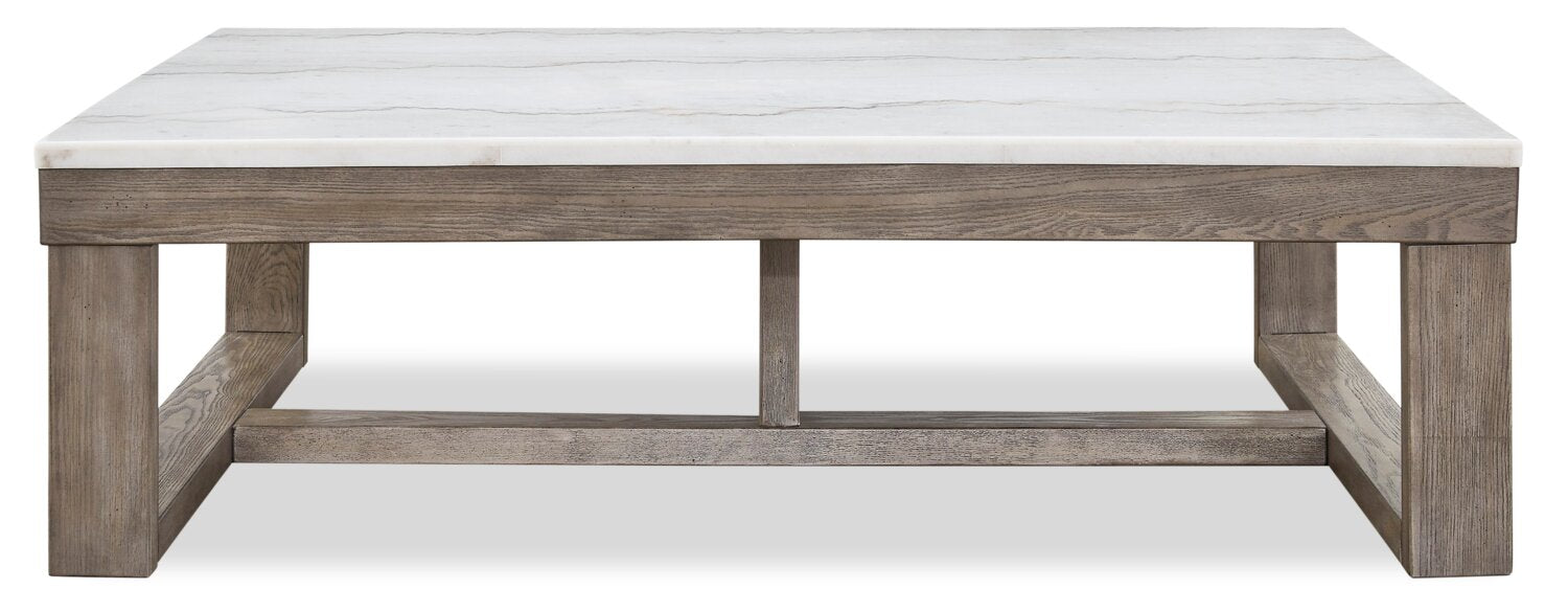 Corsa 56" Modern Coffee Table - Marble Top with Grey Brown Wood Base