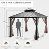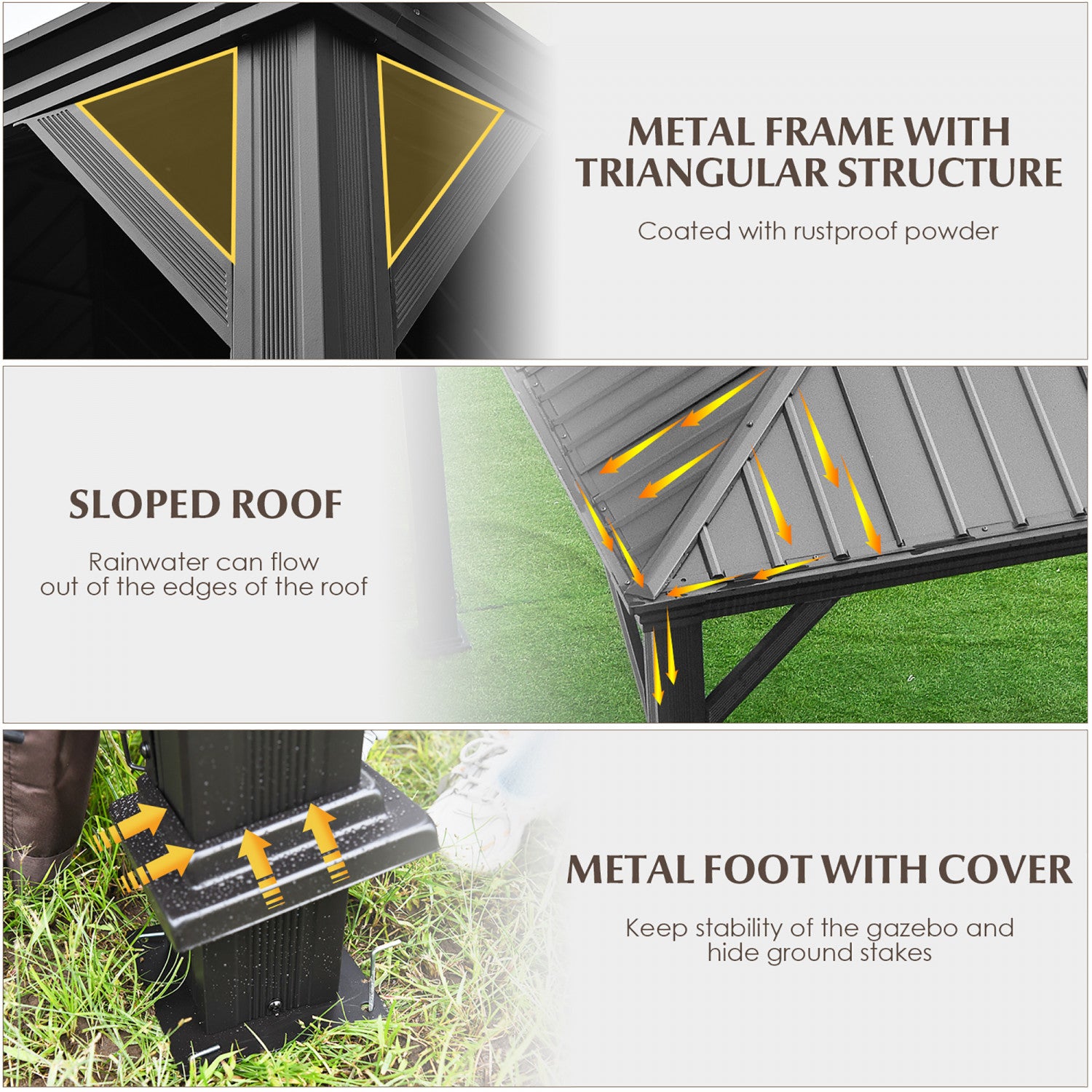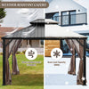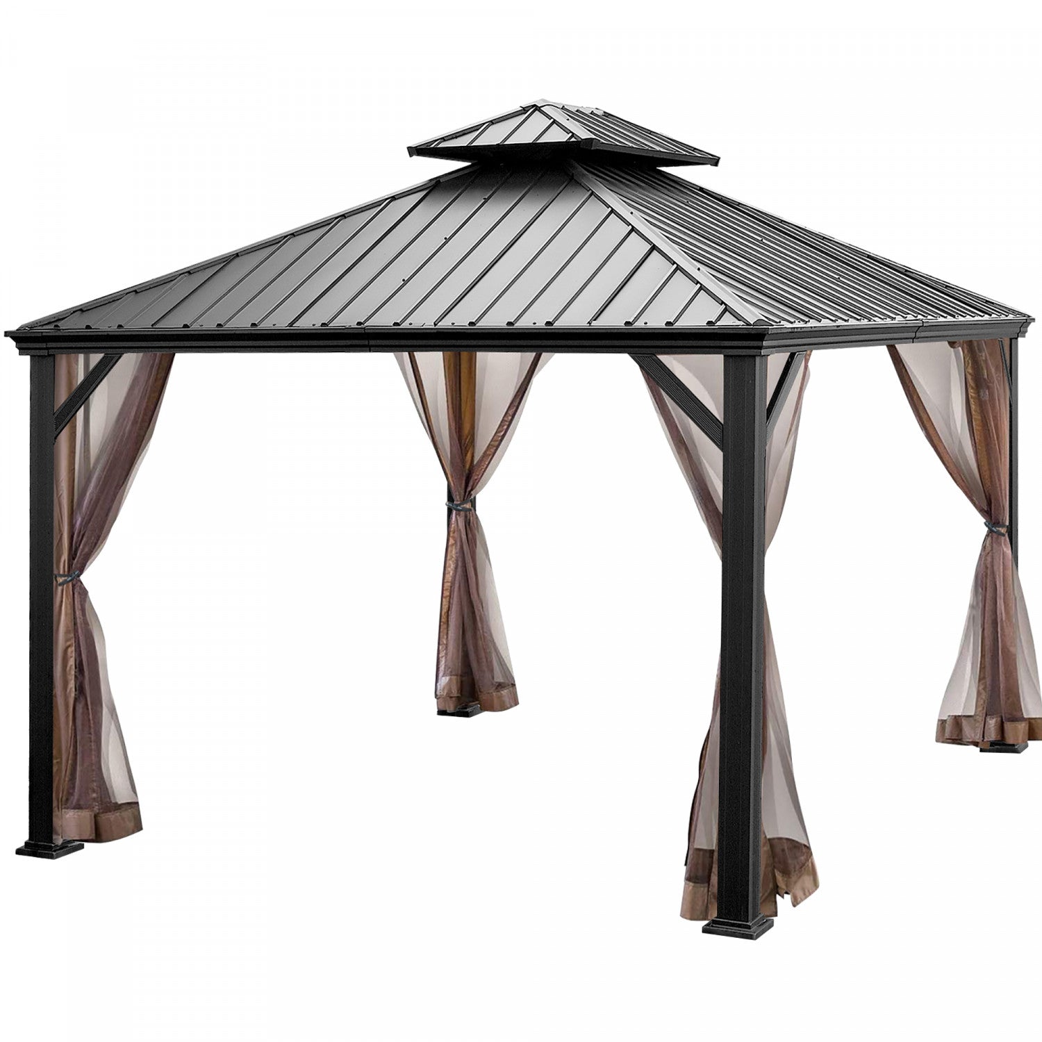 | Additional Information | Color: Black and Brown Material: Steel, Polyester Fabric Overall Dimensions: 12' x 10' x 10' (L x W x H) Net Weight: 321 lbs Wind-resistant Level: 33 miles/h Snow Load Capacity: 3600lbs Package Includes: 1 x Hardtop Gazebo 1 x User's Manual |