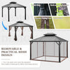 If you want to built an ex tra shade for relax ing in your backyard, this hardtop gazebo will be a nice choice! Compared with common canopy made of fabric, our hardtop sun shelter that made of heavy-duty galvanized steel is more sturdy and reliable in outdoor environment. It performs well in rustproof, wind-resistance and rainproof abilities. The 2-tier roof could load snow up to 3600lbs in cold winter. The air vent can not only increase its wind-resistance, but also facilitate heat dissipation. In addition, you can hang fan or lamp on the central hook to improve the degree of comfort under the canopy. 4 zippered mesh walls help to keep good air ventilation. It's suitable for 6-8 people in daily use.