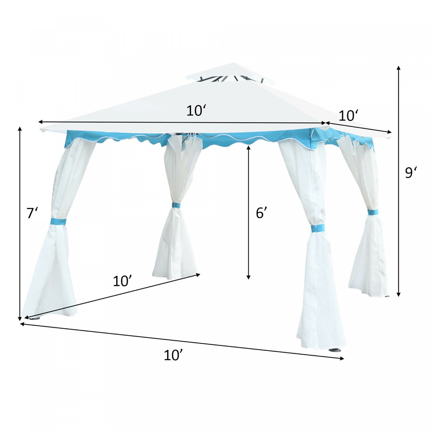 | Additional Information | Color :White & Blue Material:Steel and polyester fabric Overall Dimension Of This Item:10'X 10' X8.5' (LxWxH) Product Weight:48.5lbs Package includes: 1 X 2 tier Canopy Tent |