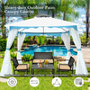 | Key Features | Elegant appearance Steel construction and polyester fabric, sturdy and tough With a curtain , full surrounding design will protect you from UV, rain and flies or mosquitoes disturbing A double tier roof allows for proper airflow Easy to install, tough and low maintenance privacy curtain. Easy to clean, grey polyester fabric Full zippers design ,east to cloth the curtain and create private space A great place to gather Perfect for having outdoor parties, having a picnic or holding a wedding |