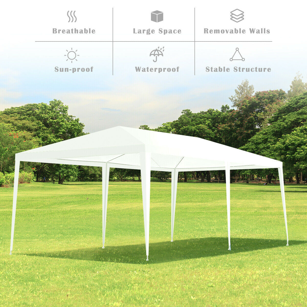 | Key Features | tough Water Proof Polyethylene cover High quality, rust & corrosion resistant powder coated steel framework High strength PP joint fittings 6 side walls , 4 w/ Windows and 2 without Windows Easy and fast to set up suitable for all kinds of events Block up to 99% of the sun's UV rays All necessary Hardware is included Great for Commercial use / Parties / backyard events, etc Comes with Ropes and Stakes base for added Stability Installation Manual Included |
