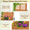 Are you looking for a multifunctional garden planter that combines style and practicality? Look no further than this raised garden bed. It comes with a trellis for climbing plants or vines, and a large planter box for potted plants. Meanwhile, the 2 side hooks allows you to hold garden tools easily. With its slatted bottom for excellent drainage, this elevated planter prevents water pooling, promotes proper ventilation, and provides roots with the essential oxygen they need to thrive. Additionally, the high-hardness wood frame is pre-treated with teak oil, which is crack resistance and weather resilience, ensuring long time use. This freestanding planter container is perfect for displaying flowers, creating privacy, and keeping gardening tools organized in areas like balconies, patios, and gardens.