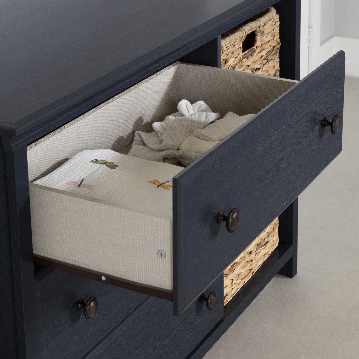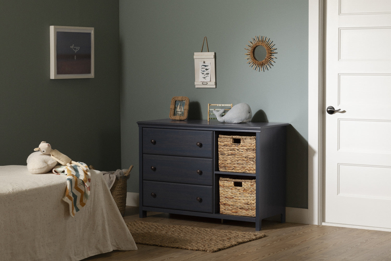 A new take on storage. This storage piece – with three drawers on one side and two baskets on the other – will meet all your needs: clothes, toys, sheets, etc. The baskets are an easy way to move their contents from room to room. A chest with a timeless look this cute chest, in a more traditional style, will last you through the years without looking out of date. The attractive little round knobs and the texture of the baskets make this a unique, elegant piece. A handy shelf the top surface is large enough to hold all those personal things you like to keep within reach in your kid’s room. The height is ideal for letting your kids have easy access.