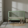 A trendy bohemian baby bed. Preparing the nursery for baby's arrival – how exciting is that?! And with this super bohemian style crib, you’ll have a room that looks like it came straight out of pinterest! We like it's delicate bars and it's angled legs made of real wood – features that give it a natural, zen, and refreshing style. And this piece of furniture is finished all around, which means you can put it wherever you want, even in the center of a room. How amazing! A crib that grows with your child. Babies grow very quickly, so it’s important to choose furniture that’ll last over time. This crib is a real 3 in 1! You get a crib, a transition bed, and a small bed all at once – so this piece will evolve with your child, from newborn to toddler. All you have to do is replace the bars at the front with a toddler rail (not included), then remove it once baby is ready.