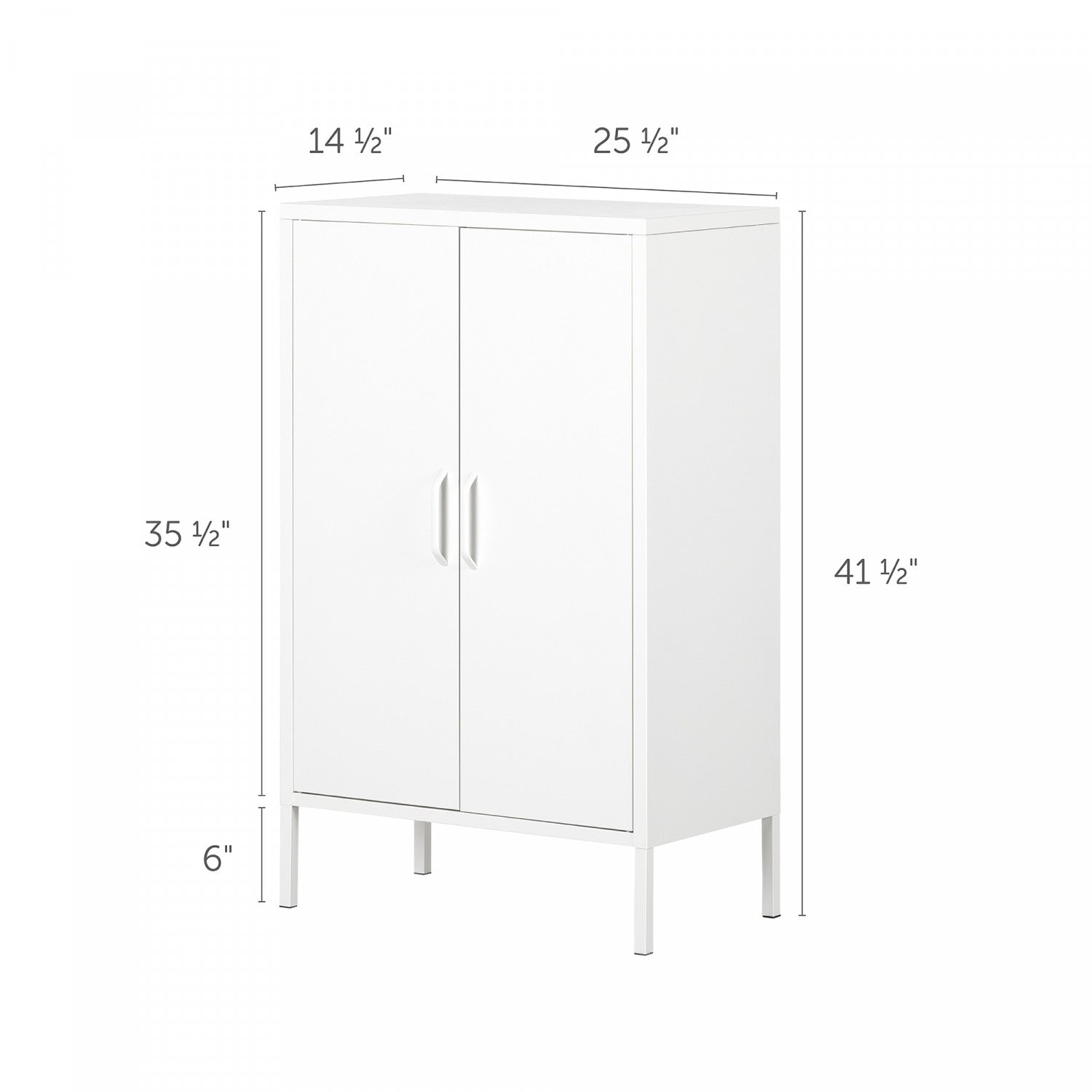 This metal storage unit is a must in any home. With its two adjustable shelves and one fixed shelf, you get a new closed space to store your things. Use it in the playroom to keep children's toys and books out of sight, or in the hallway to store seasonal footwear and accessories. It would also be great in a DIY room: you could use it to organize all your brushes and accessories. And the two doors have a magnetic closure, for gentle, quiet use.