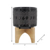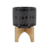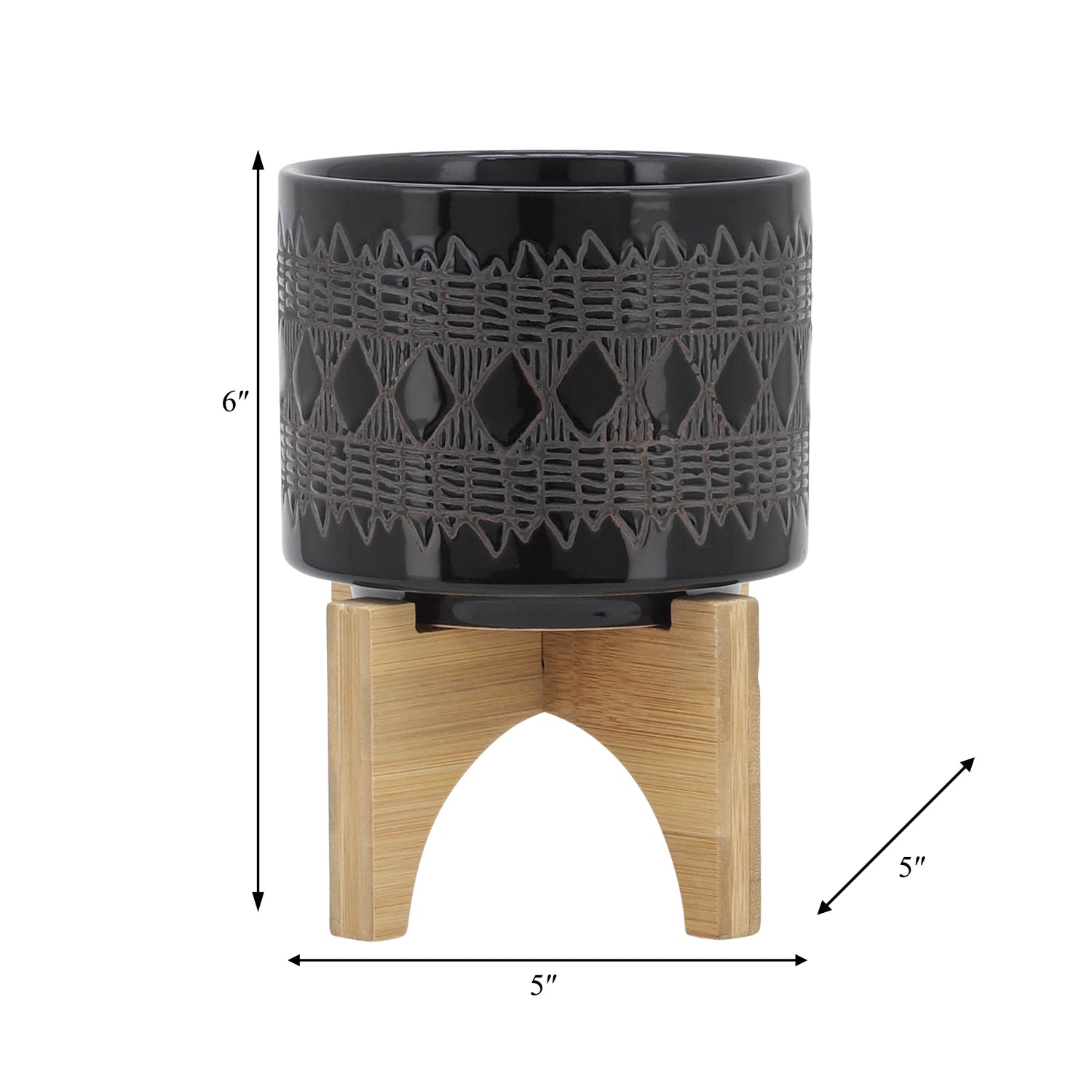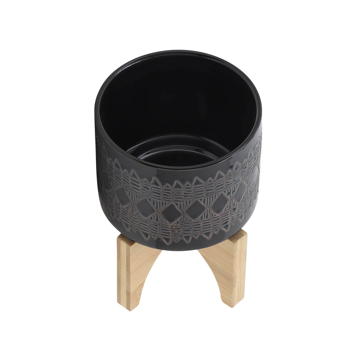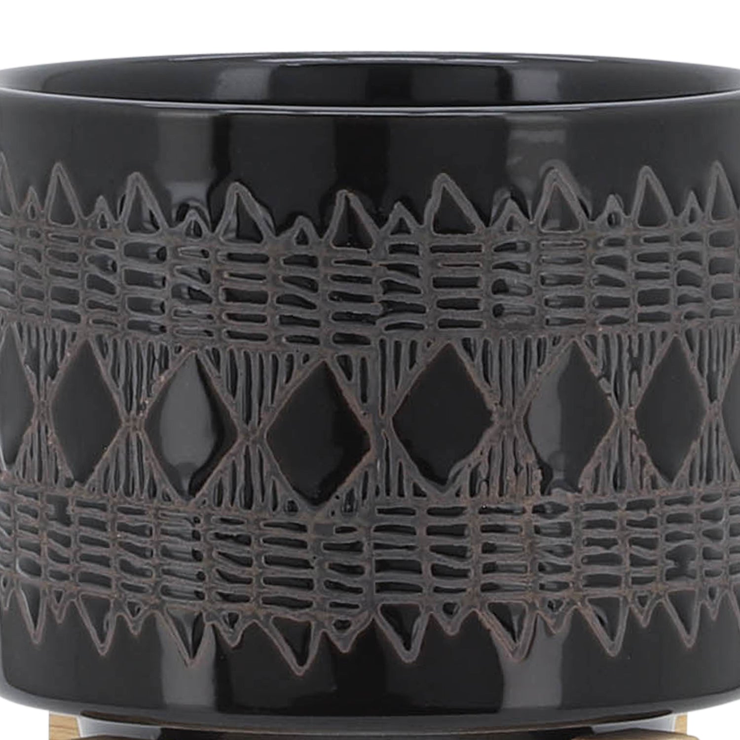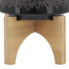 Ceramic 5" Aztec Planter with Wood Stand - Black