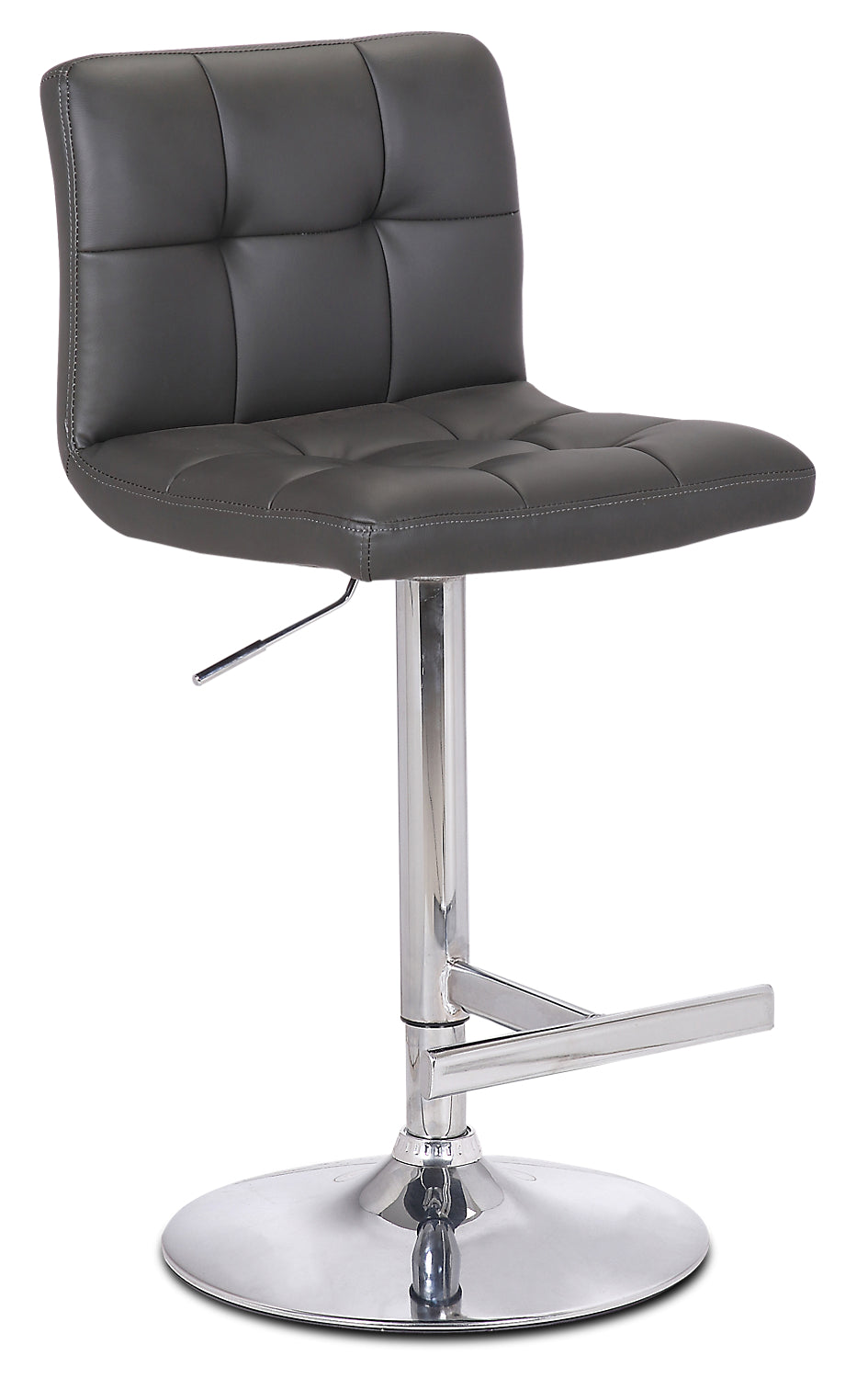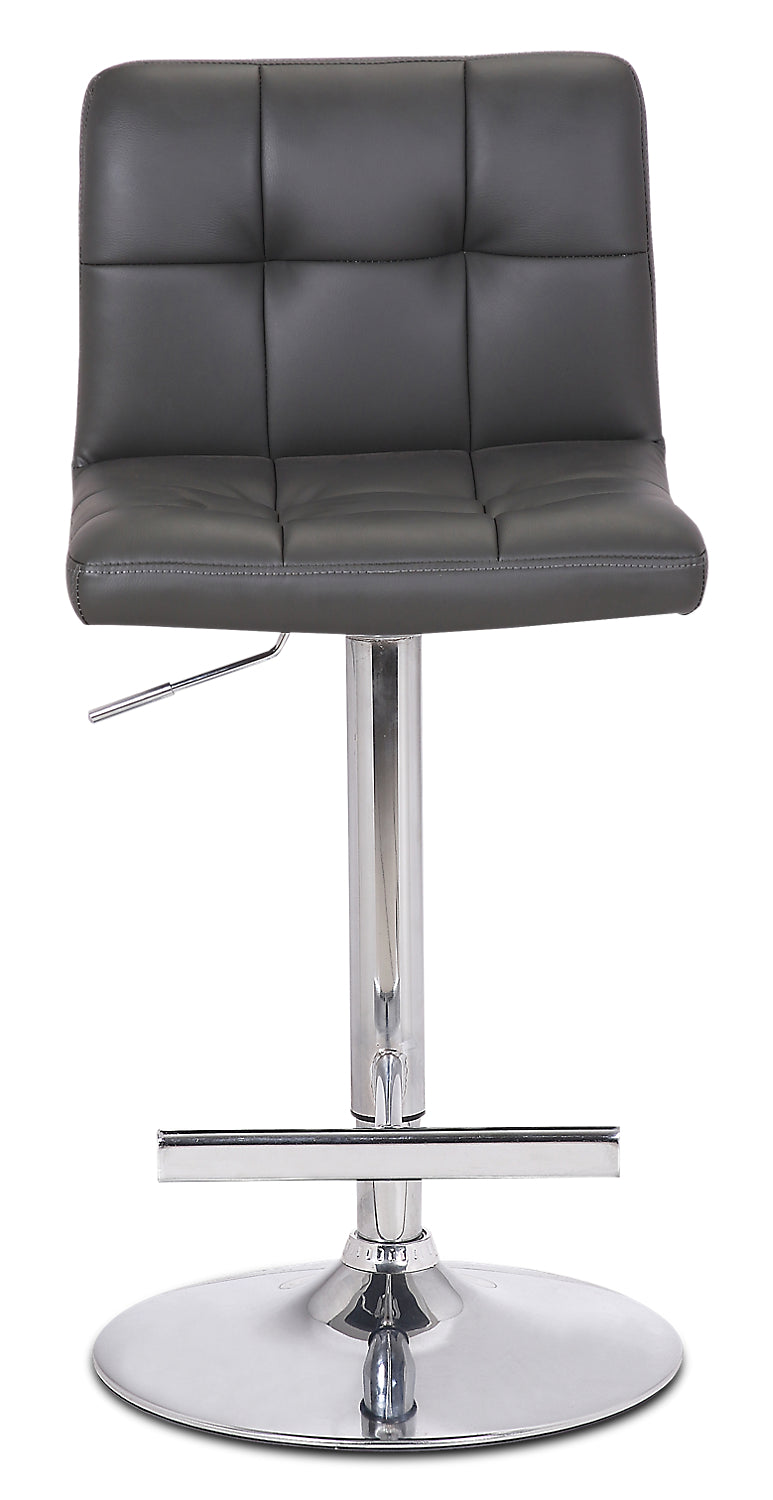 Cruise into dinnertime bliss with this Cruz grey bar stool. Rich faux leather envelopes high-density foam in an armless chair design, decorated with a square pattern and deep tufted spots. A swivel feature makes it both easy to hop on and off and to keep an eye on the action in any part of the room. Need to make some height adjustments? With the gas lift feature, the chair can easily be adjusted up or down in an eight-inch range. Add the Cruz to your dining space and make your next family dinner one to remember.