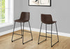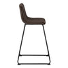 With a slim black metal frame and boasting a comfortably curved backrest and seat, this bar stool is ideal for adding style and comfort to any kitchen island or home bar. The seat, upholstered in a brown leather-look fabric, is well cushioned for extended gatherings or for enjoying a relaxing drink at the end of the day. The support bar at the bottom of the frame gives your feet a perfect place to relax.