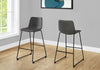 With a slim black metal frame and boasting a comfortably curved backrest and seat, this bar stool is ideal for adding style and comfort to any kitchen island or home bar. The seat, upholstered in a grey leather-look fabric, is well cushioned for extended gatherings or for enjoying a relaxing drink at the end of the day. The support bar at the bottom of the frame gives your feet a perfect place to relax.