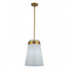 This pendant from kevin kraemer’s dahlia collection is a harmonious blend of understated elegance and thoughtful craftsmanship. Its soft, white glassware radiates a gentle glow, while the rich brass banding, adorned with intricate knurl knobs, adds a touch of refined character. Perfect for any kitchen, island, or dining room