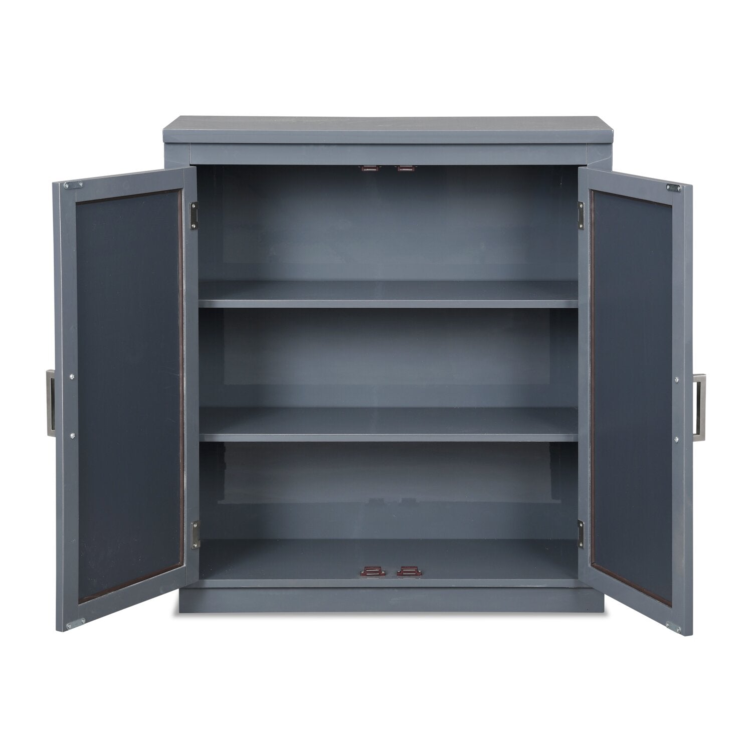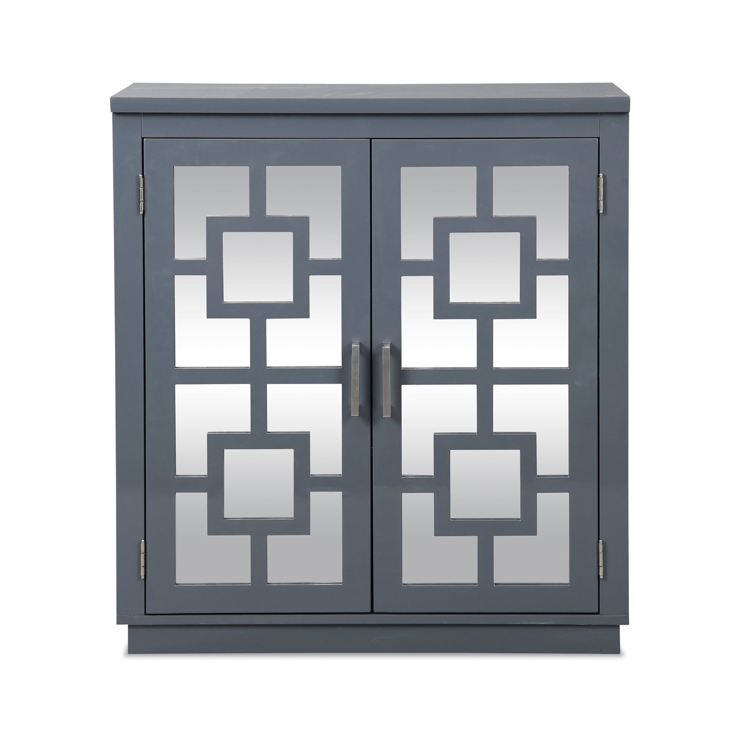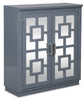 | Hardware | Two rectangular, metal handles on the cabinet doors add a glint of sparkle and add to the vintage look. |
