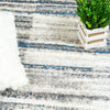 This beautiful modern area rug features an exquisite Boxed and Hombre design and a blend of cream, blue, and beige colours.