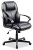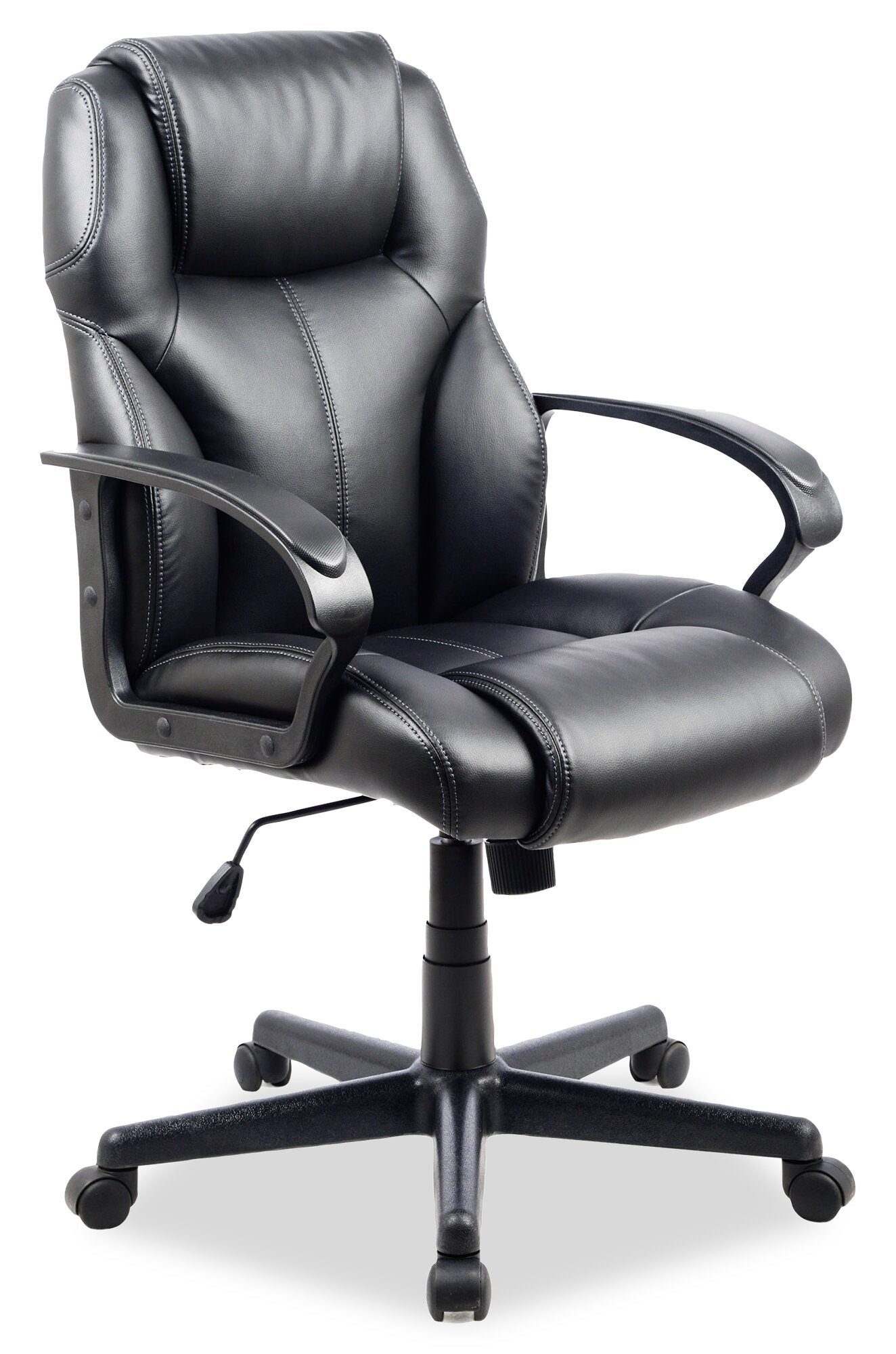 Add executive comfort to your workspace with this Delson office chair. Its black leatherette cover wipes clean with ease while its form-fitted backrest promotes proper posture. Effortlessly move around your office floor thanks to its hooded caster wheels. This chair’s height adjusts with ease to help you work ergonomically correct and prevent strains. Plus, its durable nylon base and comfortable cushion fill ensures this chair will support you through your heaviest workloads.