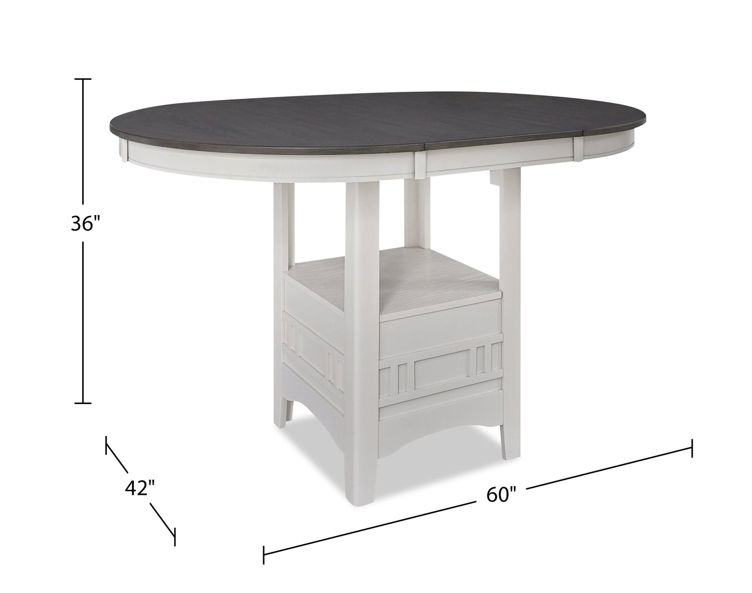 Gather your family, large or small, around this Dena dove grey counter-height dining table to break bread and make memories. Oak veneers are applied over a rubberwood base to create an appealing look in your chic eating space. Around the edge of the surface are bowtie-shaped connectors to hold the pieces together with a homemade feel. A compact design allows this piece to fit into a limited area – yet if everyone comes over for a special meal, you can use the removable table leaf for an extra 18 inches. Put this Dena table at the heart of your family's magical moments.