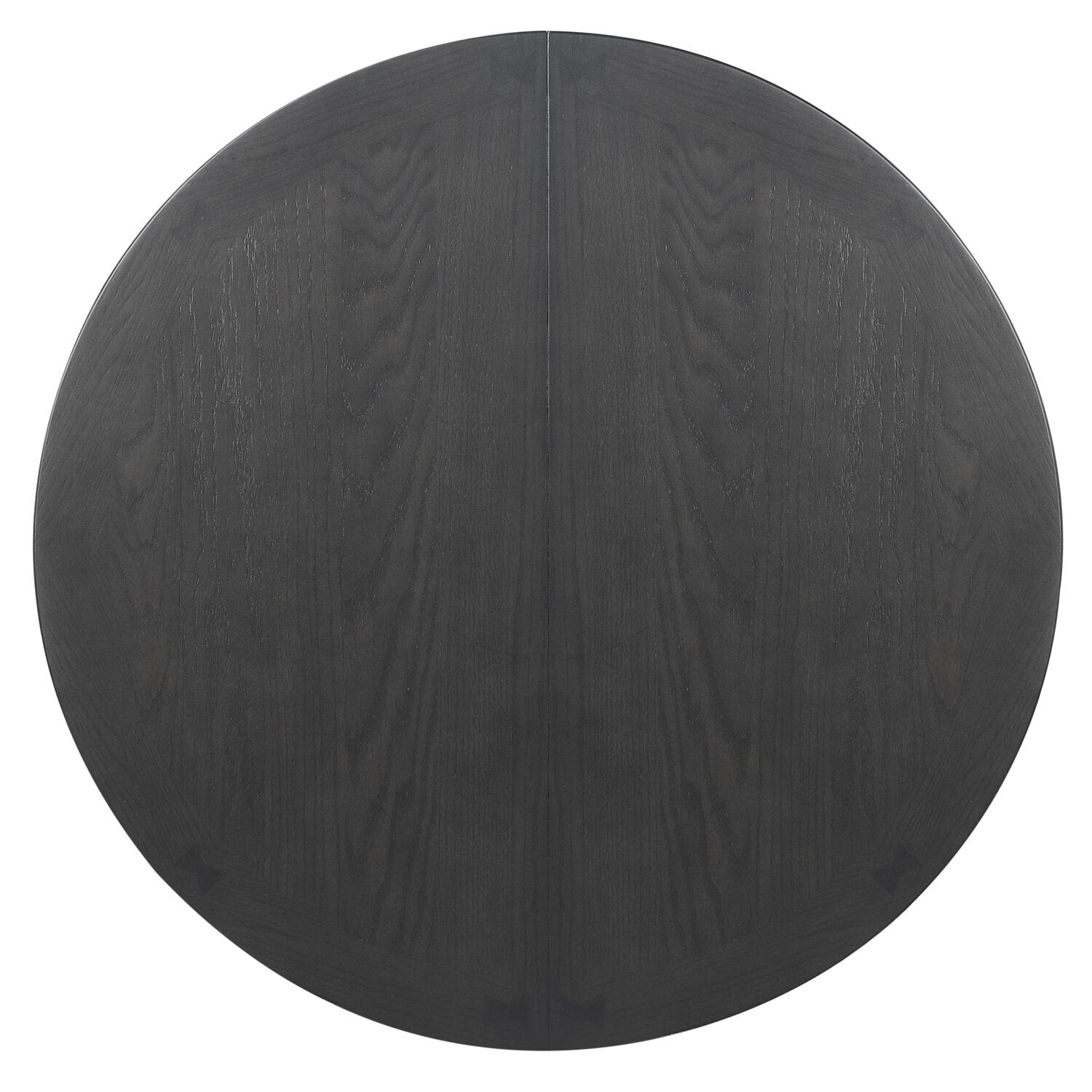 Gather your family, large or small, around this Dena grey-brown dining table to break bread and make memories. Oak veneers are applied over a rubberwood base to create an appealing look in your chic eating space. Around the edge of the surface are dark, bowtie-shaped connectors to hold the pieces together with a homemade feel. A compact design allows this piece to fit into a limited area – yet if everyone comes over for a special meal, you can use the removable table leaf for an extra 18 inches. Put this Dena table at the heart of your family's magical moments.
