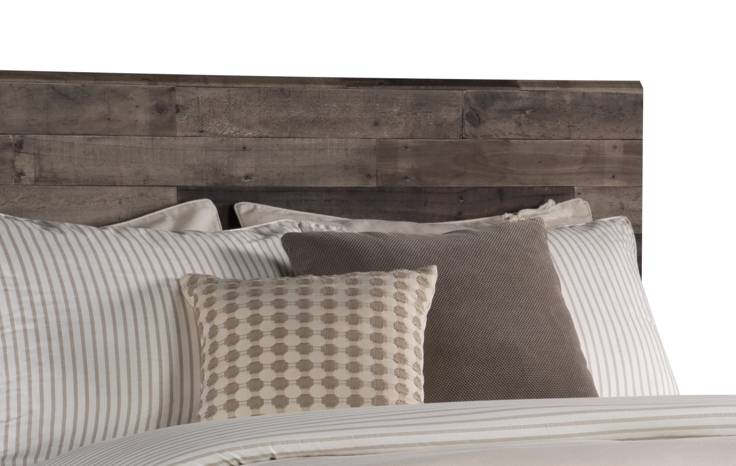 Enjoy that outdoorsy feeling from the comfort of your home when you add this Derekson queen-size headboard to your bedroom. Faux-pine pieces are fitted together to create a butcher block pattern across the top surface, with each grey-hued panel sporting a natural wood grain design. Whether for the cottage or the loft, this headboard is a charming addition to your space.