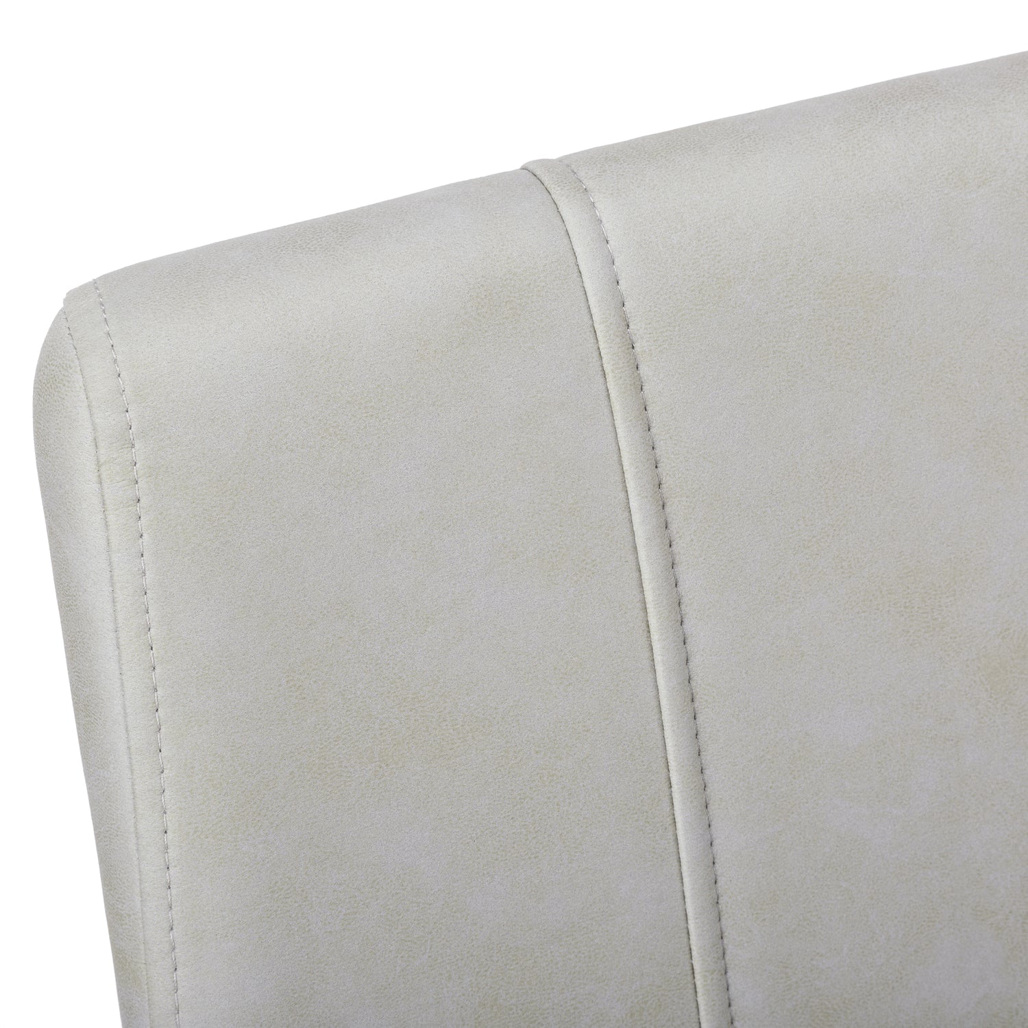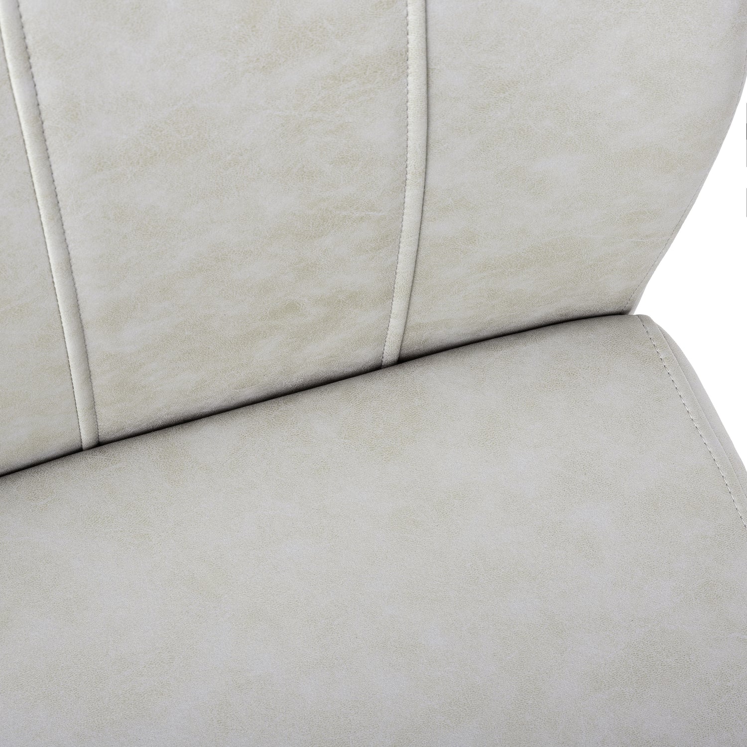 Show off these two up-to-the-minute kitchen chairs with confidence. They are made of a smooth faux-suede grey fabric with sturdy luxurious black metal bases in a U shape. Enjoy the enhanced comfy seat that will make a statement in your small home, apartment or condo. These armless dining room chairs will slide perfectly under the table to save space when not in use. Don't forget to match with an identical kitchen table to complete your stylish kitchen or dining room collection.
