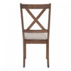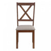 Add some warmth to your casual family dining room or kitchen with this set of 2 transitional style, armless dining chairs in a warm walnut brown finish. The seats are upholstered in durable brown fabric with thick padding for maximum comfort and an open cross back for added style. Made from quality engineered wood, the subtly slanted open, cross back frame and straight front legs with curved back legs, provides reliable stability due to the sturdy construction. The simple design, fashionable style, and neutral finish of these armless chairs are appealing for a range of decors, and suitable to place in any room. easy to assemble with full illustrated instructions included. there is a 2 year limited warranty for any manufacturer's defects.