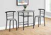 Create a compelling and cohesive aesthetic in your space with this three-piece dining set, which includes one table and two chairs. Perched atop curved metal legs, the oval table is crafted from manufactured wood, while the two chairs feature a ladderback design with tubular metal detailing. Stylishly finished in a modern grey laminate seat and table top combined with black metal, this set blends with a variety of color schemes.
