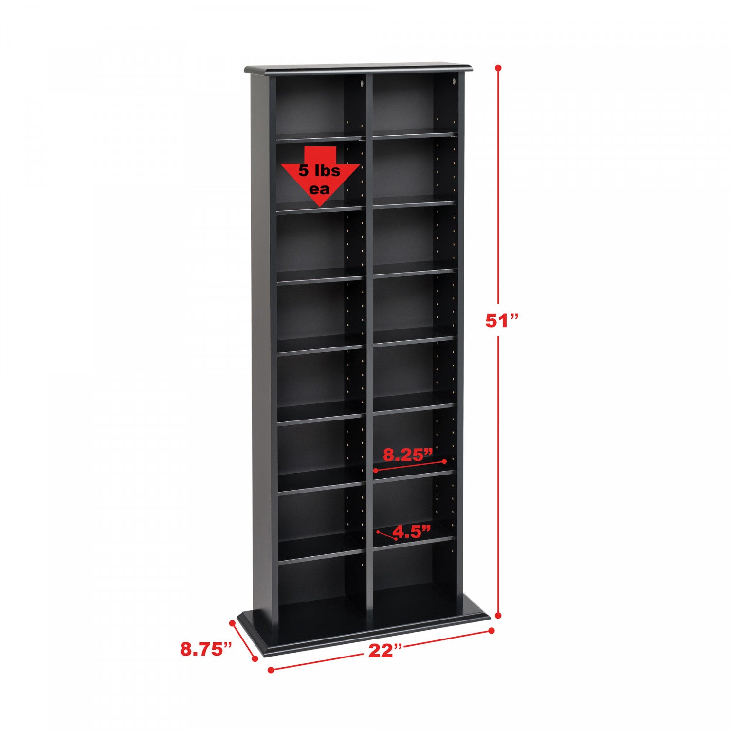 Attractive and versatile, the Double Multimedia Storage Tower is a practical storage solution for your media collection. Its shelves, separated by a central divider, boast room for over 300 CDs. Each shelf is fully adjustable, meaning you're free to customize according to your collection's needs. Fill and sort through your collection with ease, thanks to the horizontal storage. Attractive and functional, this tower is perfect for the casual collector.