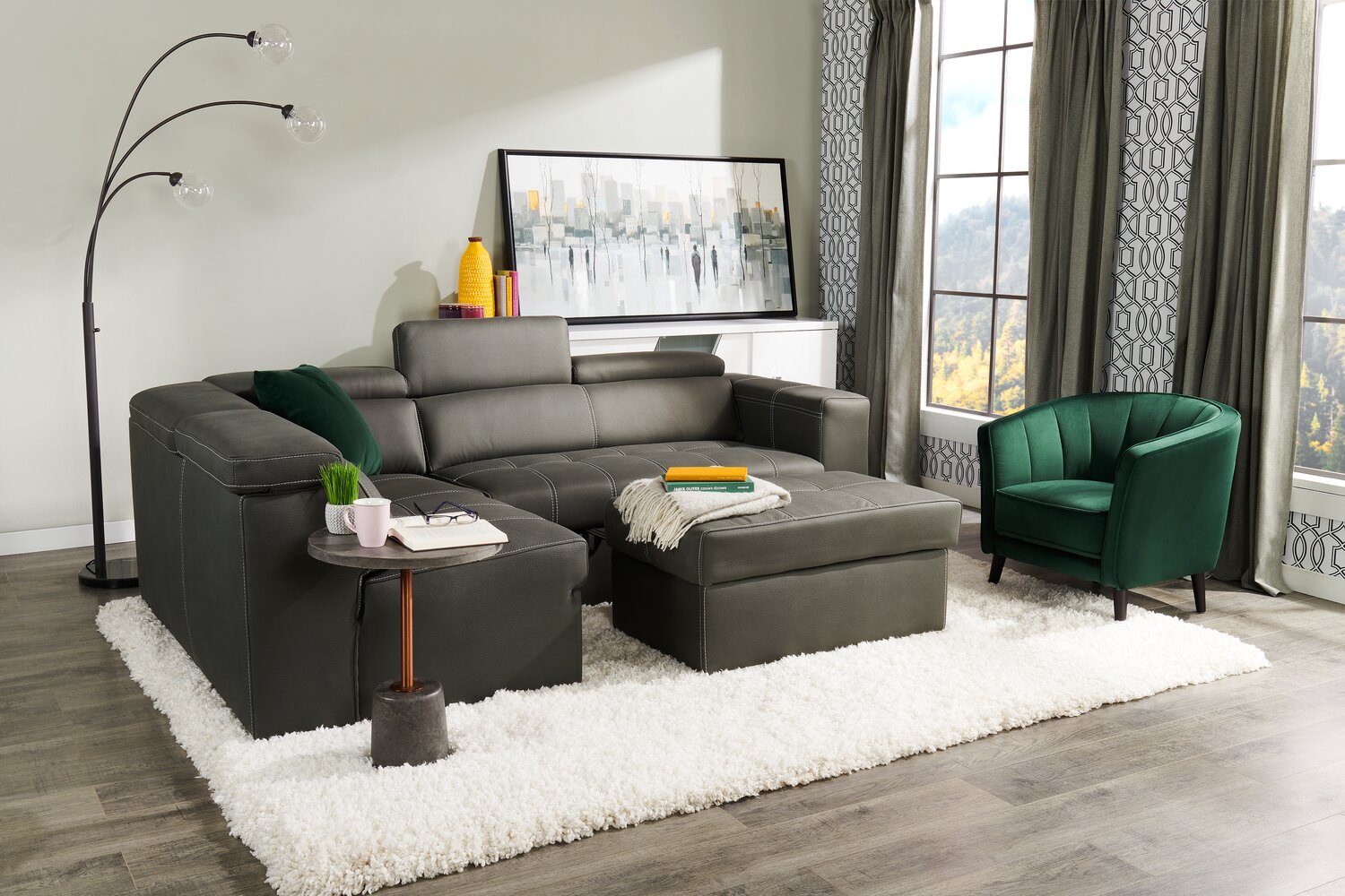 | Accent Details | A flip-up headrest and contrast stitching add a modern flourish to your living area. |