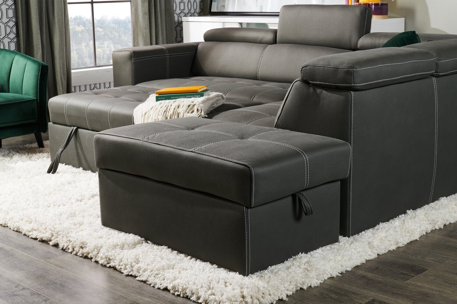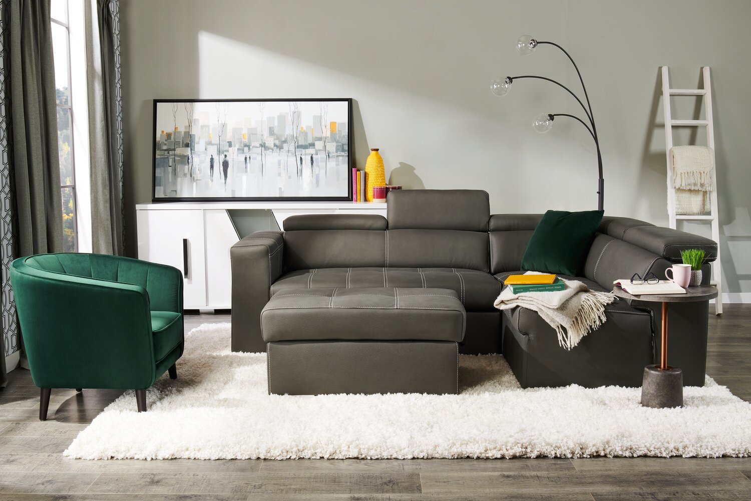| Accent Details | A flip-up headrest and contrast stitching add a modern flourish to your living area. |