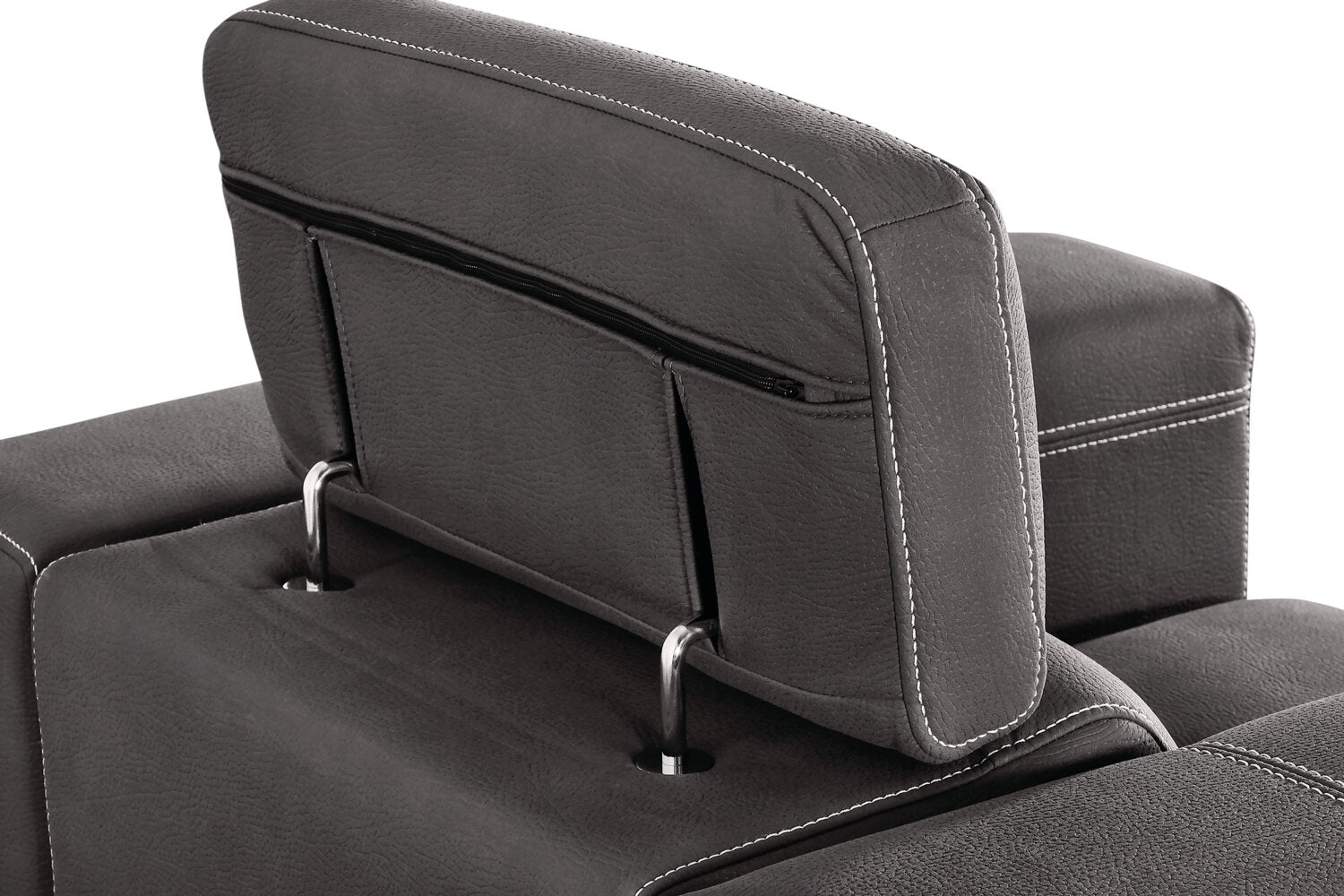 | Accent Details | A flip-up headrest and contrast stitching add a modern flourish to your living area. |