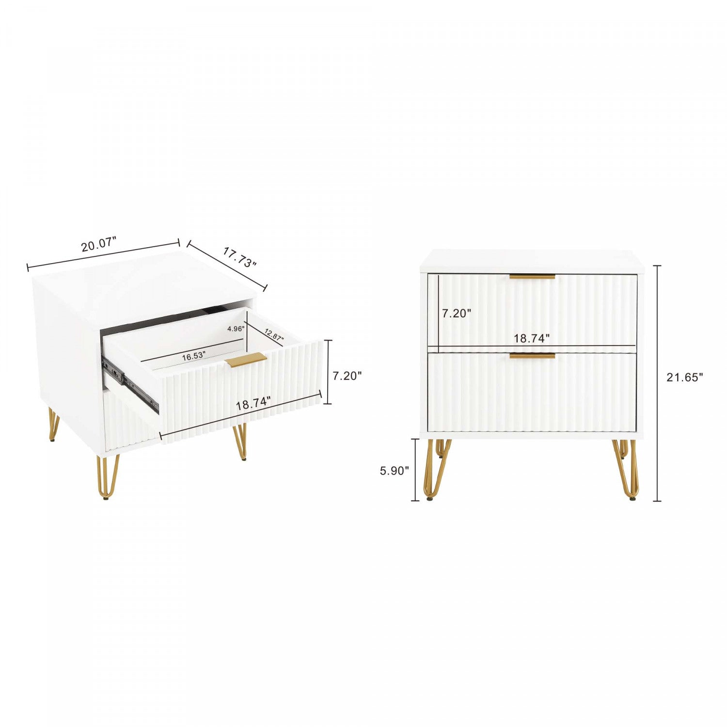 The Manhattan Comfort DUMBO Collection brings tasteful modern glam to your home! This collection features "Snap It" Assembly - no tools required for full assembly of each product! With its unique vertical ribbed drawer fronts, full extension and soft close drawers, and stylish splayed metal legs, the collection is not only a true beauty but also made with quality! Stunning variety of colors with sleek metal horizontal handles available. DUMBO is what you have been looking for all this time! Make your house a home with the DUMBO Collection.
