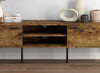 Bring a sense of balance and sophistication to your living room with this beautifully designed 71l" tv stand, where sleek form meets everyday function. Crafted with a wood-look finish and clean, modern lines, it’s the perfect piece to anchor your entertainment space with style. The generous top easily accommodates your tv, while two open shelves offer space for media consoles, books, or decor. Two framed doors provide hidden storage, keeping your space tidy while adding a touch of bold contrast to the overall design. Whether you're settling in for movie night or hosting friends, this stand offers the perfect blend of practicality and visual appeal. Its versatile look complements both contemporary and transitional interiors, making it a timeless addition to any room. With its sturdy construction and elegant presence, this tv stand is more than just furniture—it’s the centerpiece for your most relaxed and cherished moments at home. Let it transform your space into a sanctuary of comfort and style.