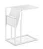 Add a pop of modern allure to your home with this Durham accent table. The table's C-shape lets you easily slide the base under your sofa to bring your drinks and snacks within arm's reach. Corral newspapers, brochures and magazines in the holder to keep the tabletop free for snacks and drinks. The sleek, white base and glass tabletop make this accent table a modern must-have.