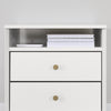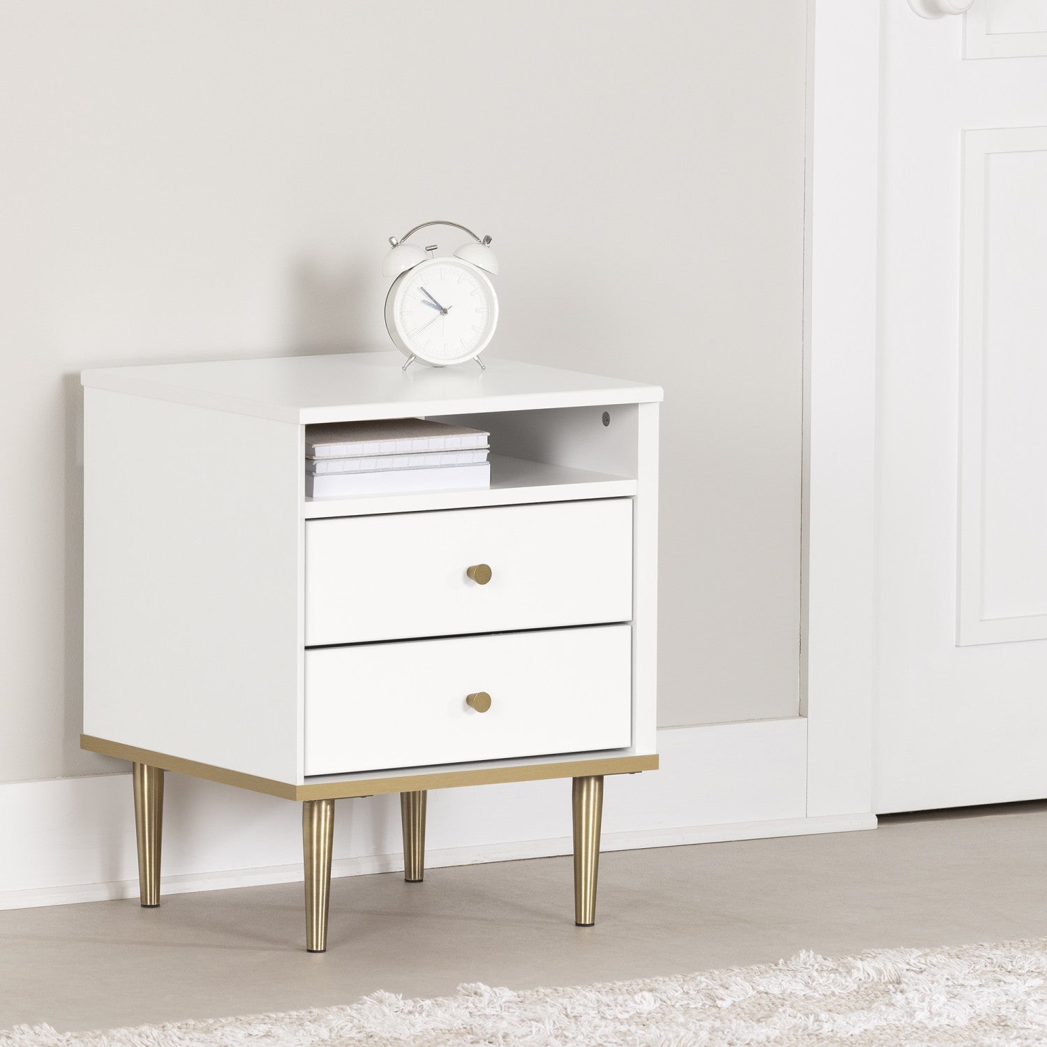 A nightstand is a “must-have” in the bedroom. This one has enough storage space that your little treasure can find many more uses for it… within easy reach. The two upper spaces are ideal for keeping a book for bedtime reading, a cell phone, or a box of tissues. Below that are two drawers on metal slides that can hold underwear and other small day-to-day accessories. The last feature is the top surface, which can hold a nice-looking lamp for a muted ambiance at night.