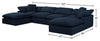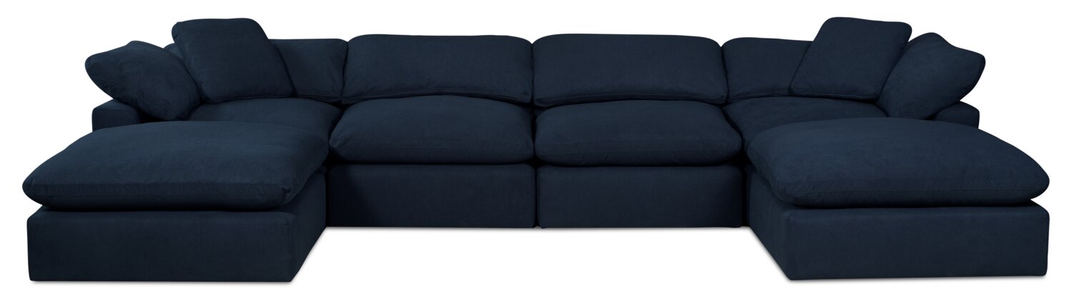 Eclipse Modular 6-Piece Linen-Look Fabric Sectional with Ottomans and Reversible Feather Down Cushions - Navy Blue
