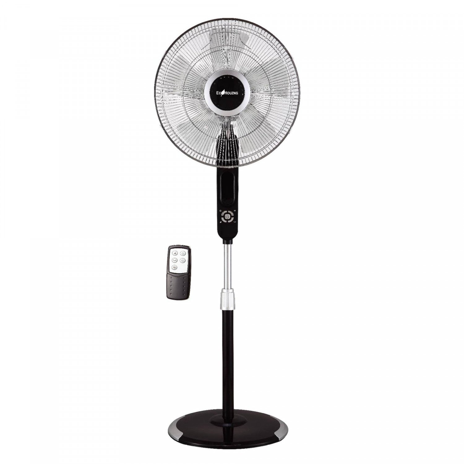 Ecohouzng 16-inch Digital Oscillating Stand Fan is perfect for a wide variety of areas and it's easy to get exactly the coverage with the adjustable height and tilt. This fan features oscillation which provides horizontal movement simultaneously to create more ventilation across the room. Constructed with durable material to increase the level of durability and reliability, and helps to keep the fan in good operating condition for a long time. The fan can deliver air simulating the natural wind from strong to weak or vice-versa making people feel fresh and natural. With the Touch-To-Stop function, this fan will automatically stop running when touching the grill covering and resume running with the previous setting, this safety feature can protect a child from injury by the fan. Additional functions such as a 6-speed setting, 8-hour timer delay, remote control, sleep and smart mode for user convenience and efficiency.